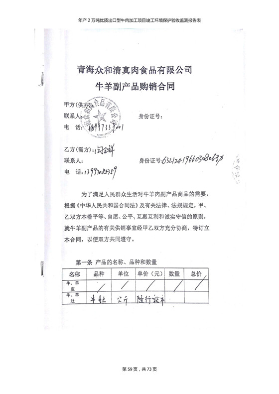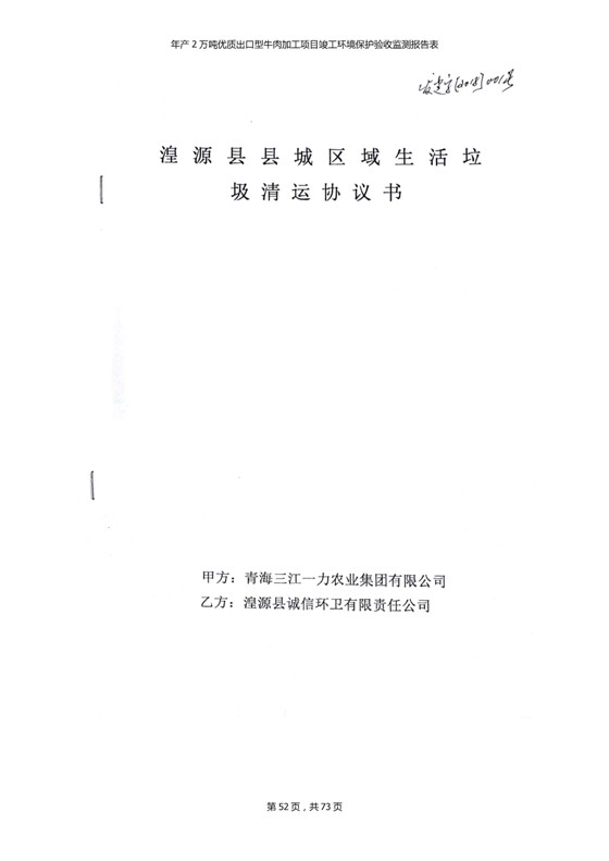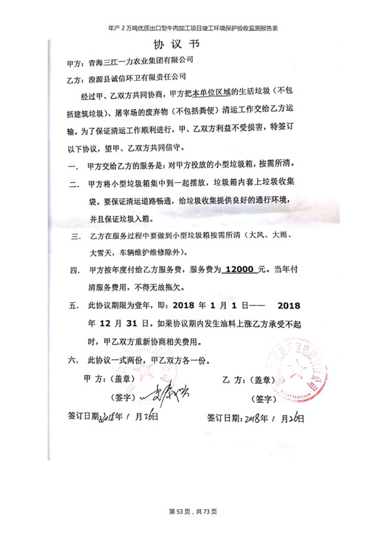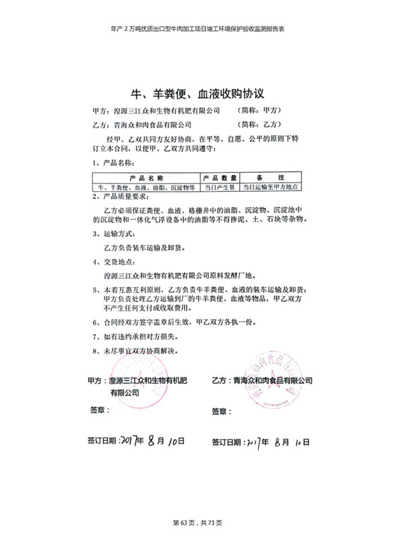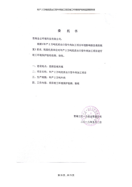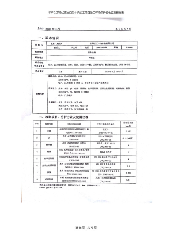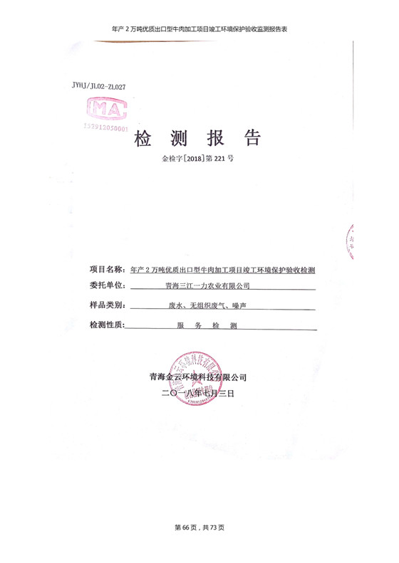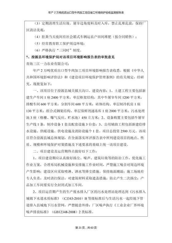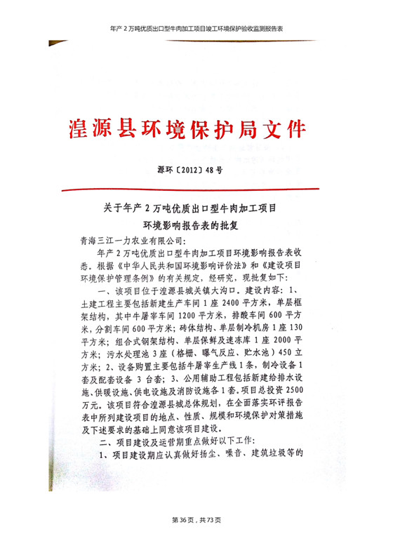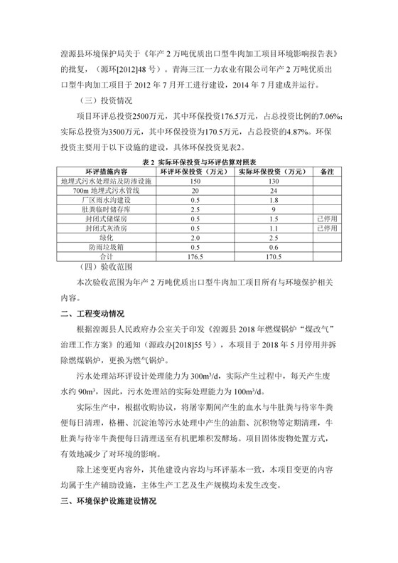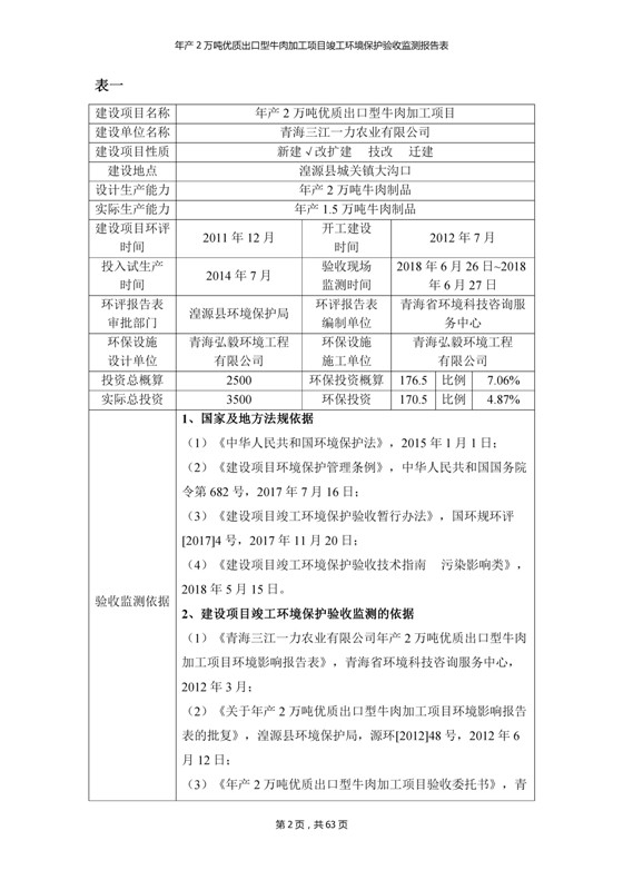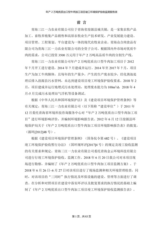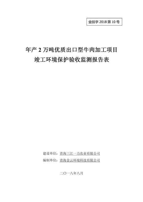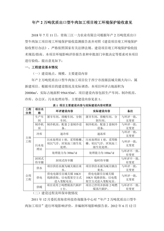 2018年7月11日,青海三江一力農(nóng)業(yè)有限公司組織召開年產(chǎn)2萬噸優(yōu)質(zhì)出口型牛肉加工項(xiàng)目竣工環(huán)境保護(hù)驗(yàn)收會(huì)。