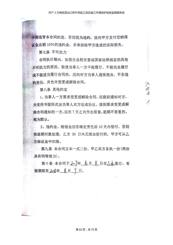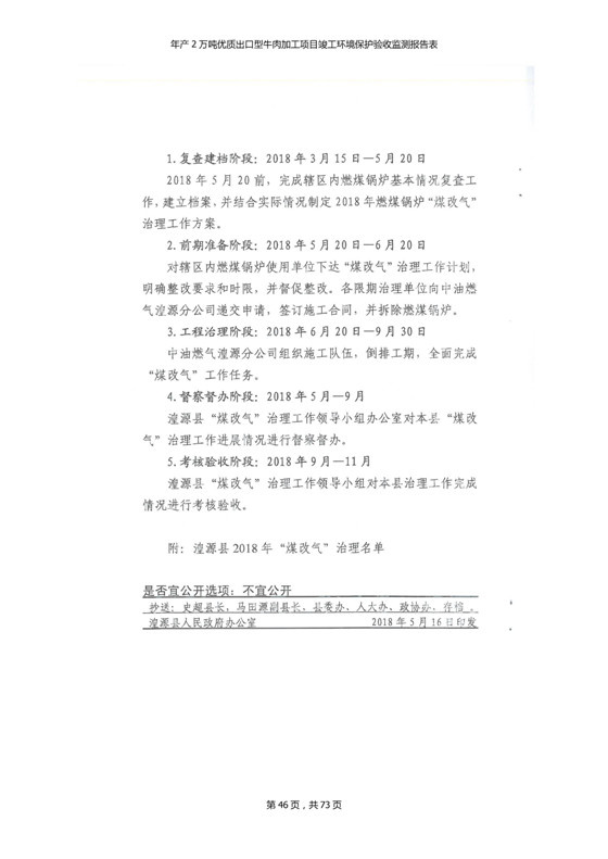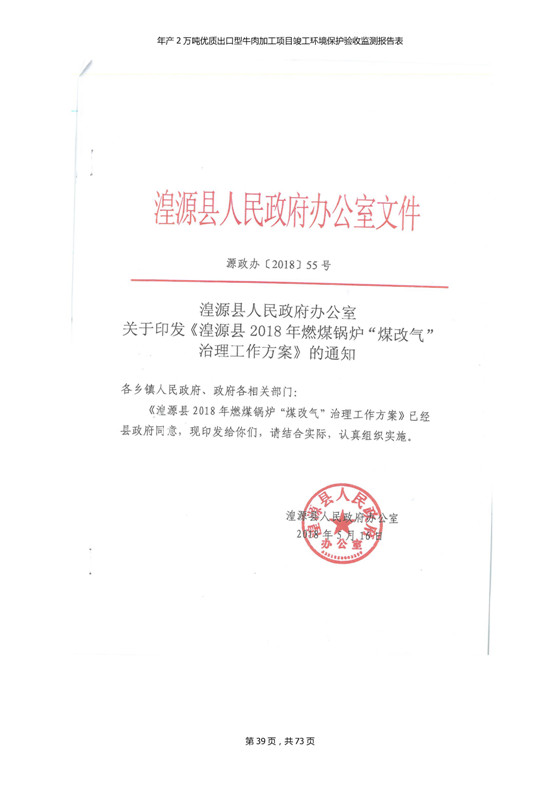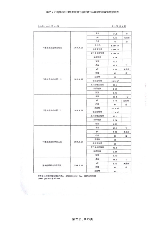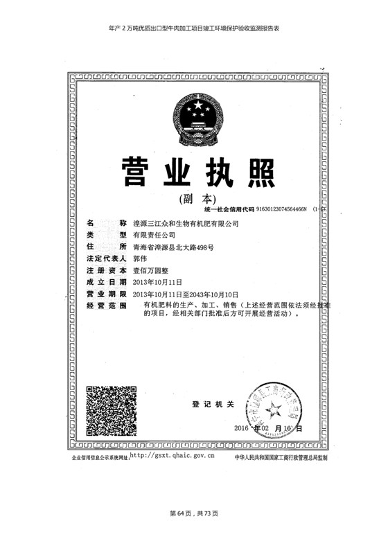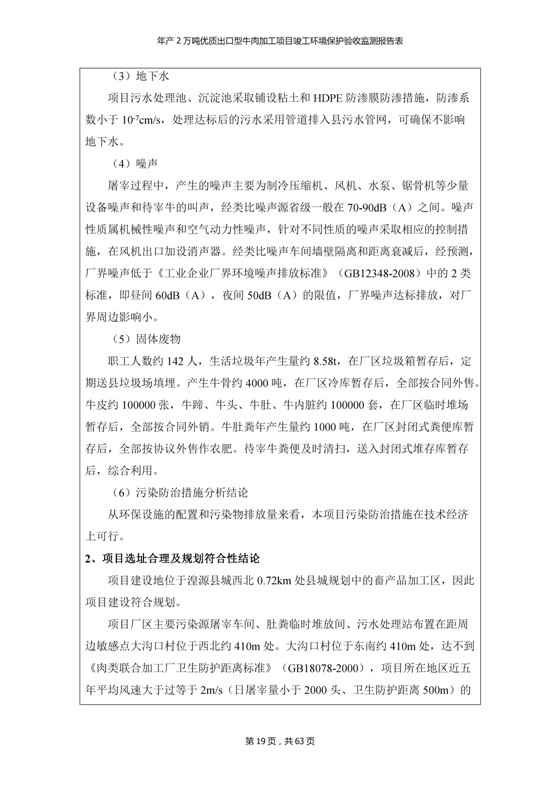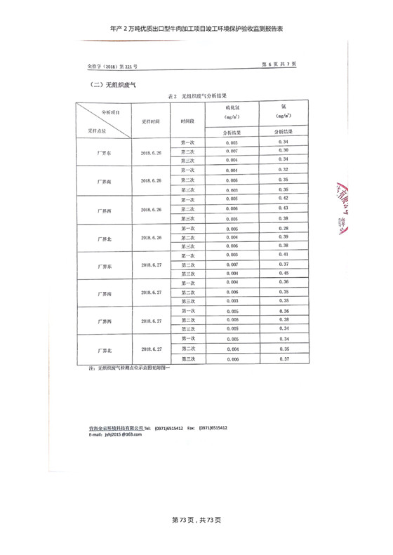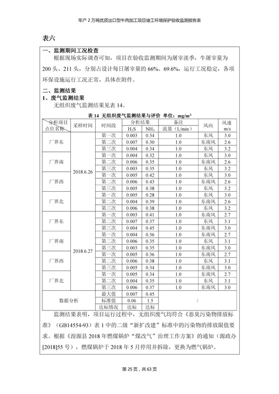 根據(jù)中華人民共和國國務(wù)院令第253號《建設(shè)項(xiàng)目環(huán)境保護(hù)管理?xiàng)l例》(中華人民共和國國務(wù)院令第682號《國務(wù)院關(guān)于修改〈建設(shè)項(xiàng)目環(huán)境保護(hù)管理?xiàng)l例〉的決定》和《建設(shè)項(xiàng)目竣工環(huán)境保護(hù)驗(yàn)收暫行辦法》,嚴(yán)格依照有關(guān)法律法規(guī),建設(shè)項(xiàng)目環(huán)境保護(hù)設(shè)施驗(yàn)收技術(shù)規(guī)范,本項(xiàng)目環(huán)評報(bào)告表和環(huán)保審批部門審批意見以及企業(yè)自行驗(yàn)收相關(guān)要求等對本項(xiàng)目進(jìn)行驗(yàn)收,本項(xiàng)目符合環(huán)保驗(yàn)收條件,可以通過環(huán)保驗(yàn)收。 青海三江一力農(nóng)業(yè)有限公司組織召開年產(chǎn)2萬噸優(yōu)質(zhì)出口型牛肉加工項(xiàng)目(一期工程)驗(yàn)收組意見.