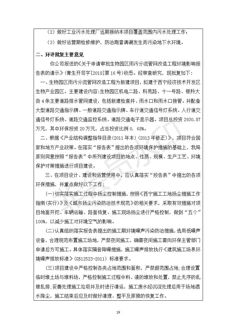 生物園區(qū)雨污分流管網(wǎng)改造工程竣工環(huán)境保護(hù)驗(yàn)收調(diào)查表 公示發(fā)布日期:(2018-12-21) 點(diǎn)擊次數(shù):2818 |