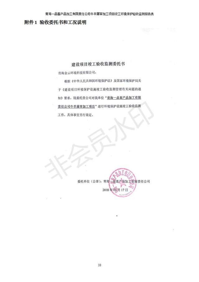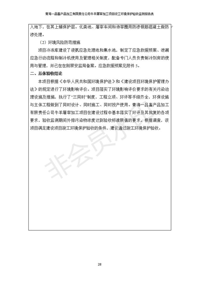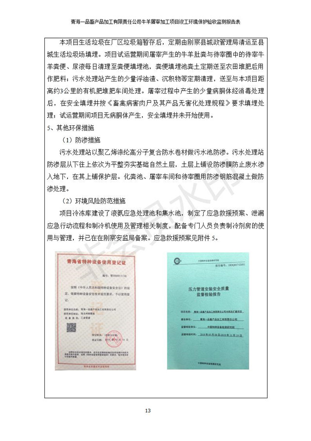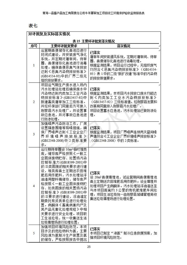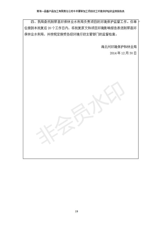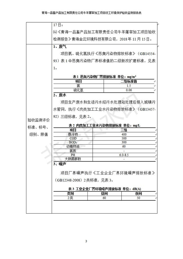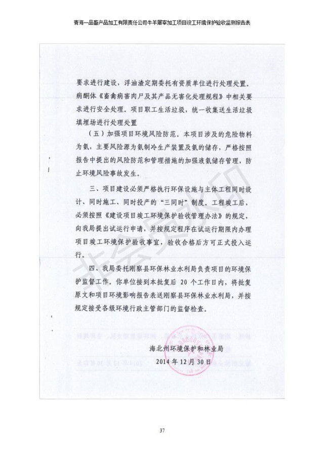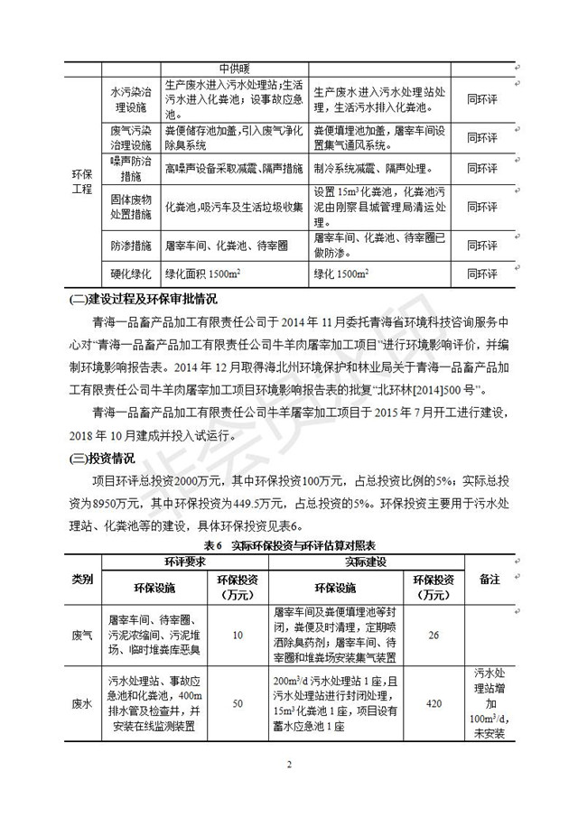 根據(jù)中華人民共和國(guó)國(guó)務(wù)院令第682號(hào)《國(guó)務(wù)院關(guān)于修改〈建設(shè)項(xiàng)目環(huán)境保護(hù)管理?xiàng)l例〉的決定》和《建設(shè)項(xiàng)目竣工環(huán)境保護(hù)驗(yàn)收暫行辦法》(國(guó)務(wù)院令682號(hào)),青海一品畜產(chǎn)品加工有限責(zé)任公司牛羊屠宰加工項(xiàng)目(包括竣工環(huán)境保護(hù)驗(yàn)收監(jiān)測(cè)報(bào)告表和驗(yàn)收意見)公示如下。 一、項(xiàng)目名稱:青海一品畜產(chǎn)品加工有限責(zé)任公司牛羊屠宰加工項(xiàng)目竣工環(huán)境保護(hù)驗(yàn)收監(jiān)測(cè)報(bào)告表 二、地點(diǎn):剛察縣縣城東大街加油站東側(cè) 三、建設(shè)單位:青海一品畜產(chǎn)品加工有限責(zé)任公司 四、建設(shè)內(nèi)容:項(xiàng)目地面積17453m2,項(xiàng)目建設(shè)內(nèi)容包括牛羊屠宰車間、牛羊肉加工車間、冷庫、辦公區(qū)、污水處理站等。 五、聯(lián)系人:張工 七、公示時(shí)間:二〇一九年一月十一日至二〇一九年二月七日 公示期間,對(duì)上述公示內(nèi)容如有異議,請(qǐng)以書面形式反饋,個(gè)人須署真實(shí)姓名,單位須加蓋公章。