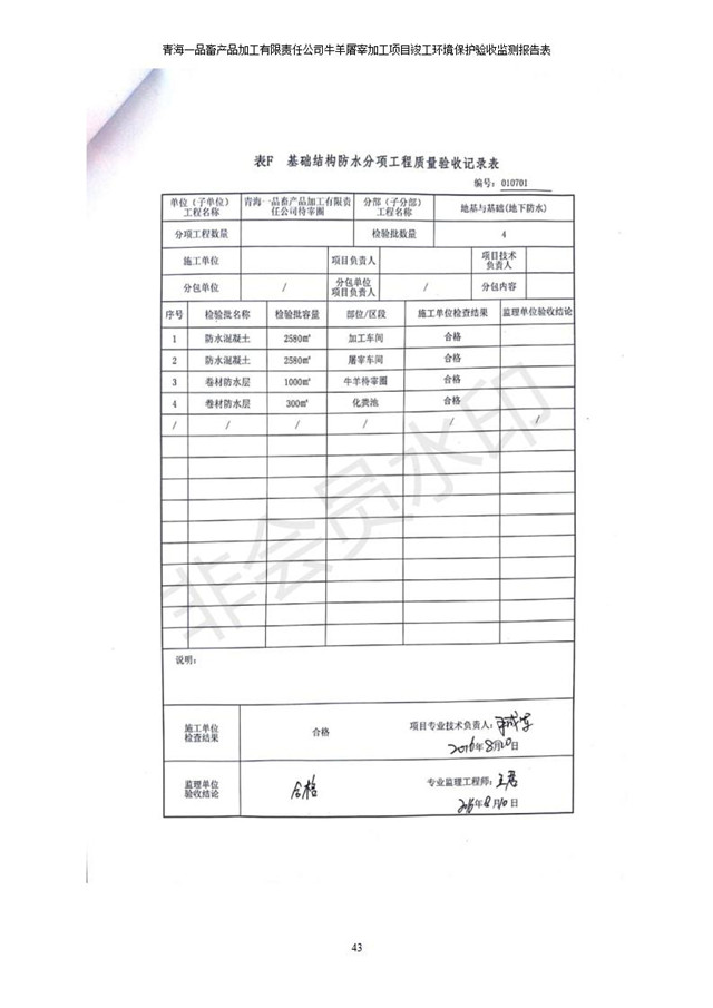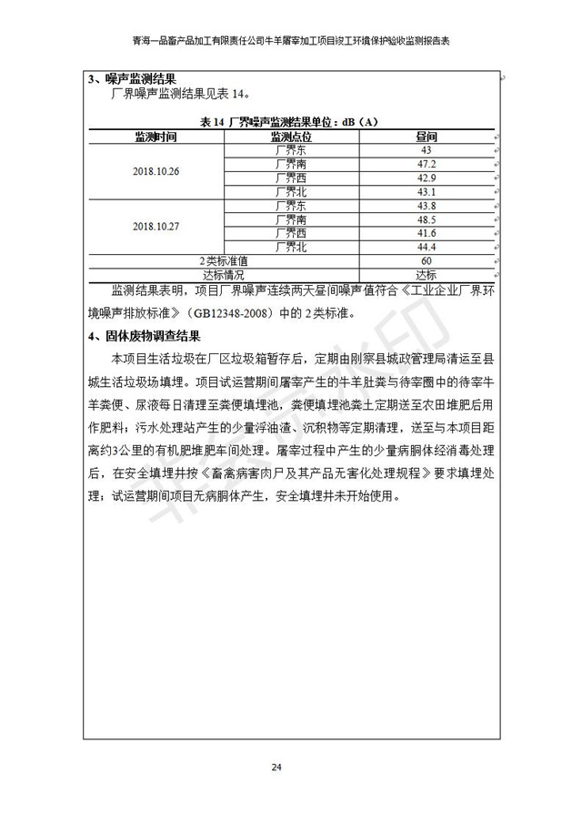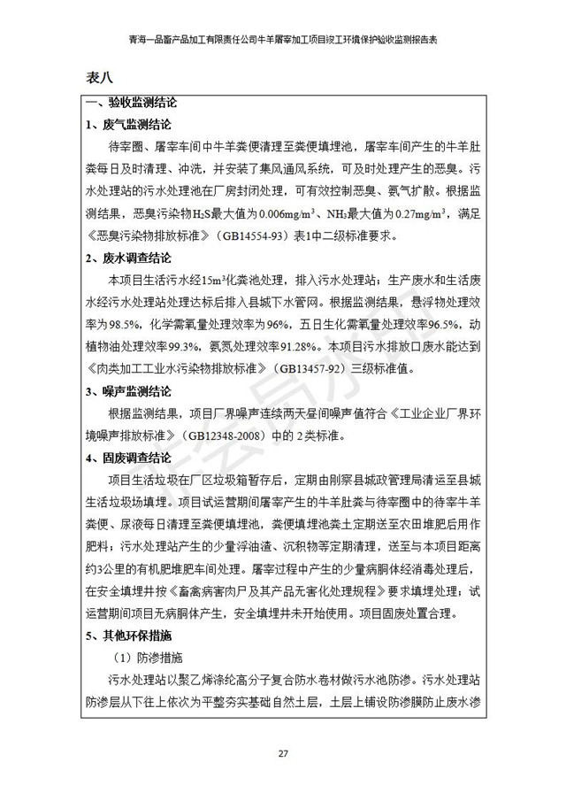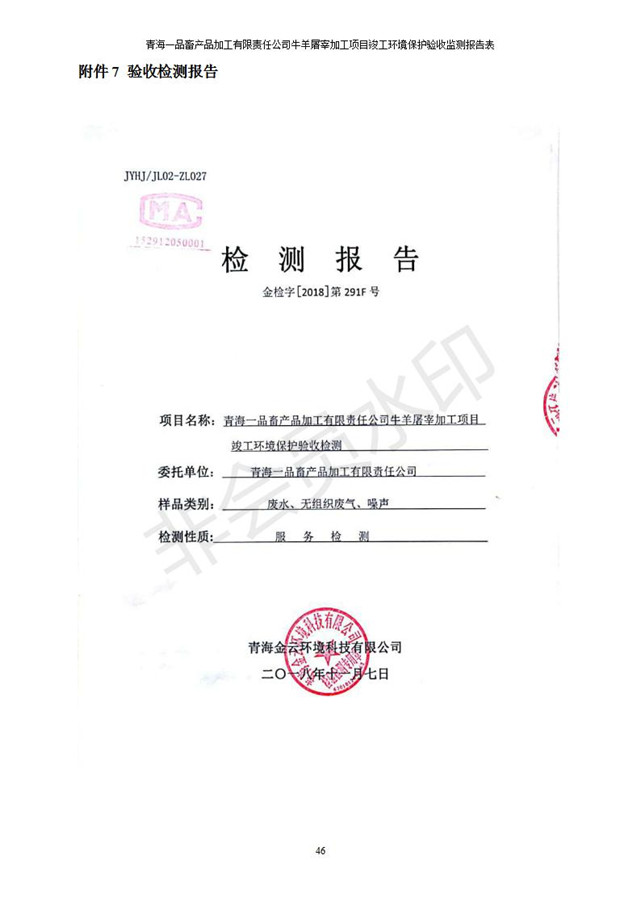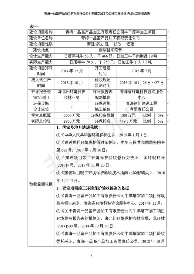 青海一品畜產(chǎn)品加工有限責(zé)任公司牛羊屠宰加工項(xiàng)目 竣工環(huán)境保護(hù)驗(yàn)收監(jiān)測(cè)報(bào)告表公示發(fā)布日期:(2019-1-11) 點(diǎn)擊次數(shù):3133 |