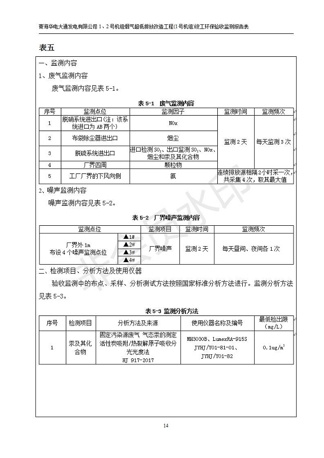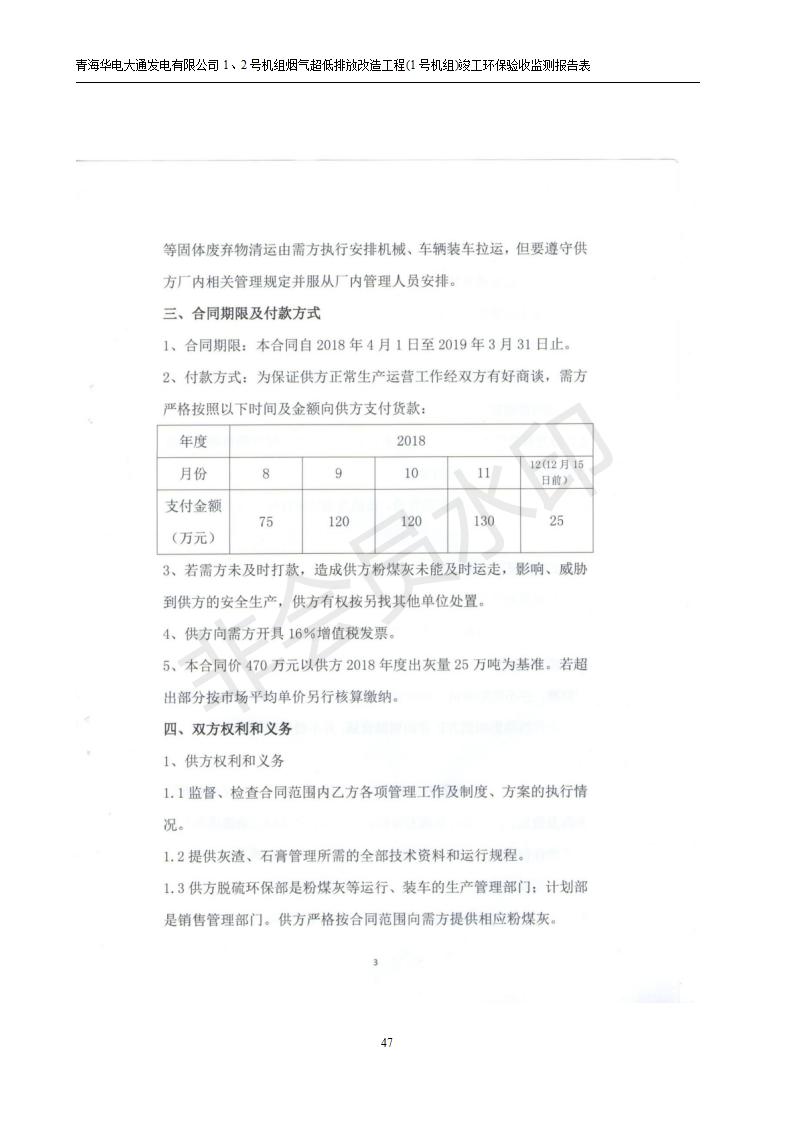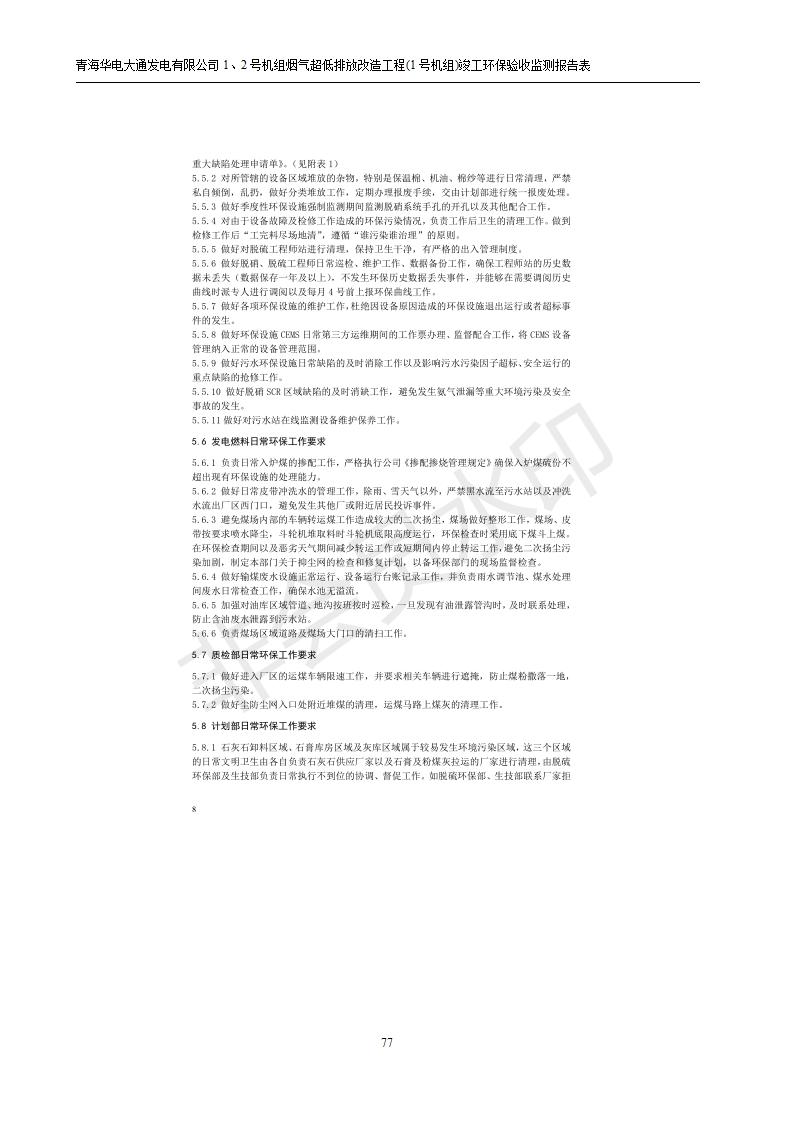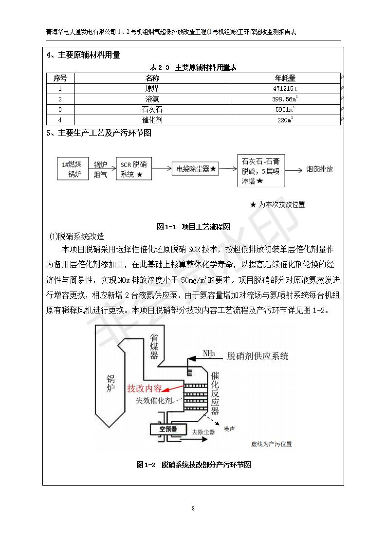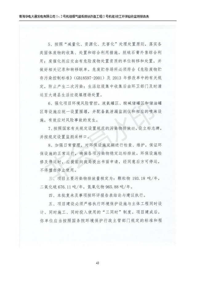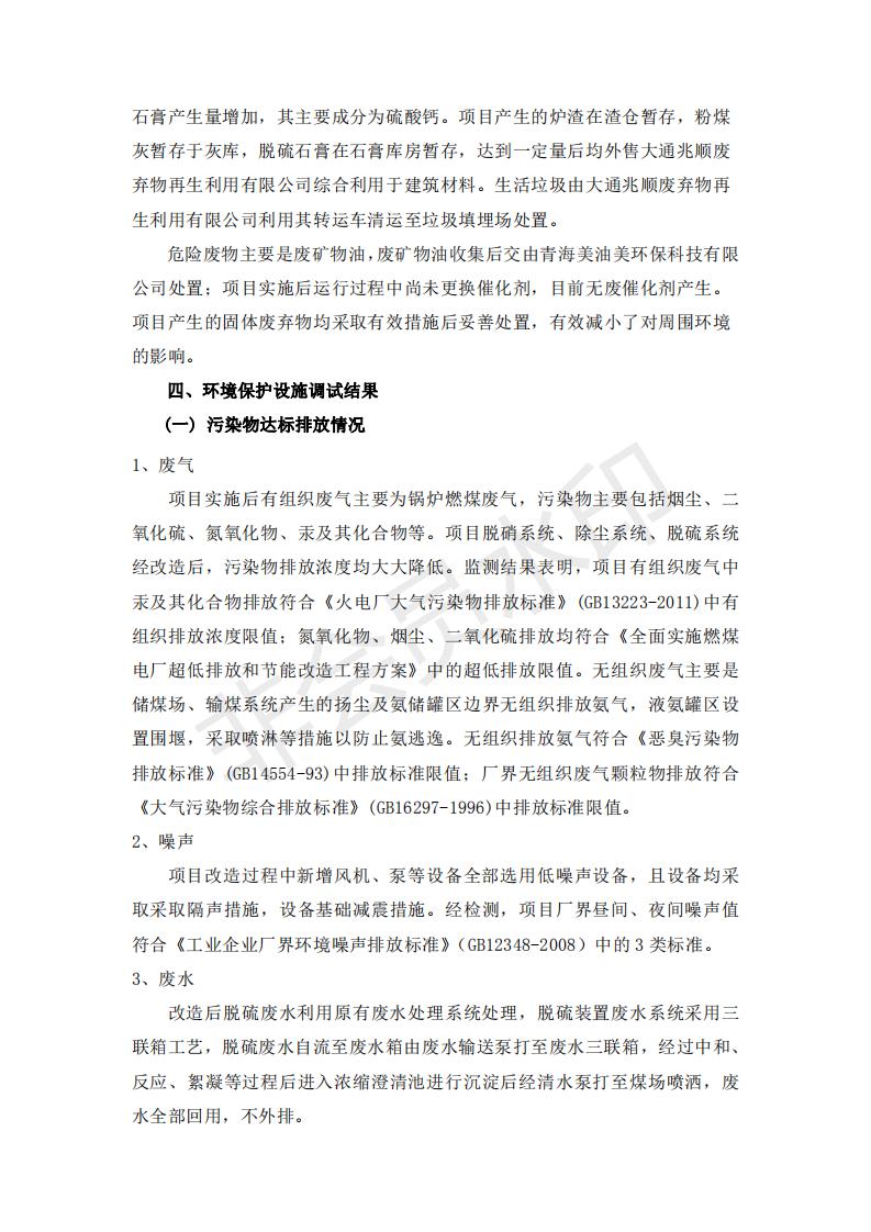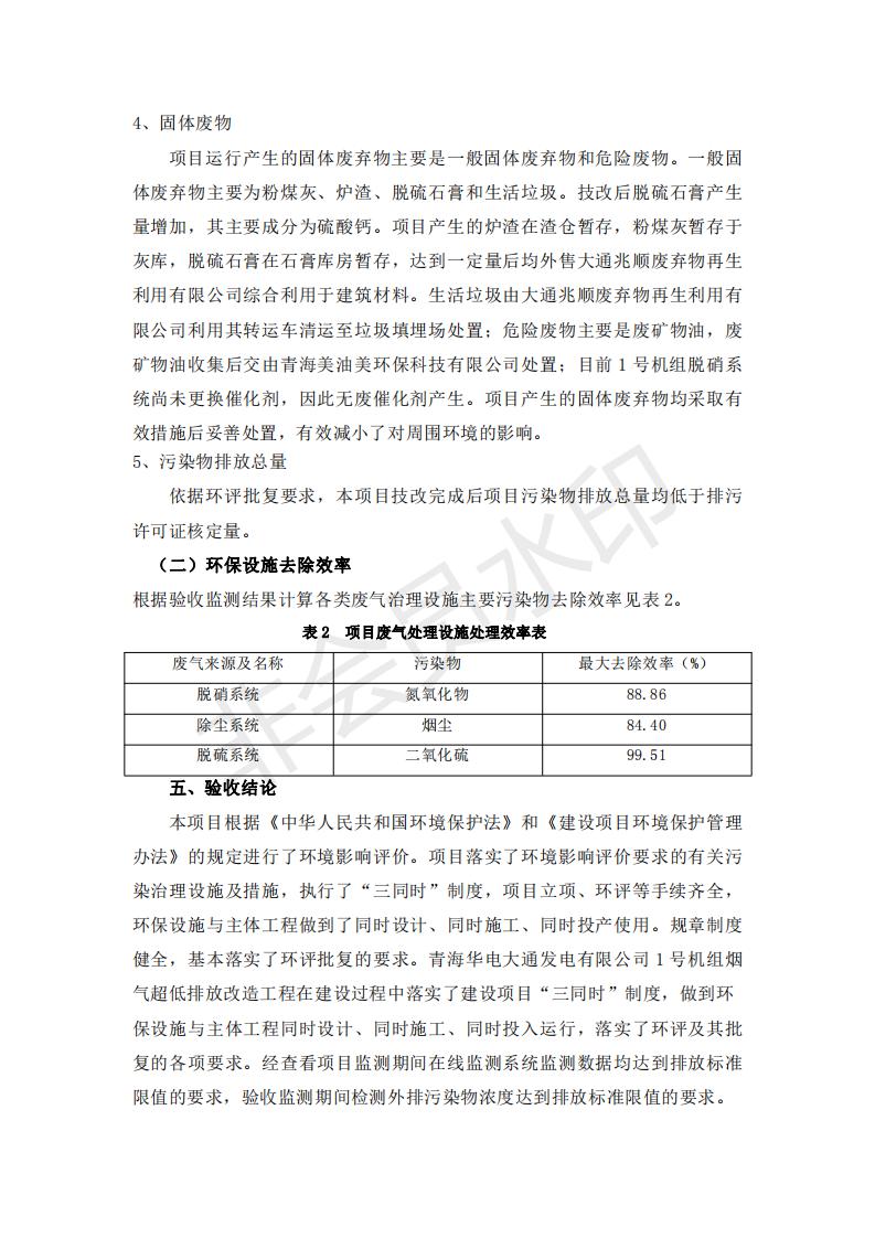 根據(jù)中華人民共和國國務(wù)院令第682號《國務(wù)院關(guān)于修改〈建設(shè)項目環(huán)境保護(hù)管理條例〉的決定》和《建設(shè)項目竣工環(huán)境保護(hù)驗收暫行辦法》(國務(wù)院令682號),青海華電大通發(fā)電有限公司1、2號機組煙氣超低排放改造工程(1號機組) (包括竣工環(huán)境保護(hù)驗收監(jiān)測報告表和驗收意見)公示如下。 一、項目名稱:青海華電大通發(fā)電有限公司1、2號機組煙氣超低排放改造工程(1號機組) 竣工環(huán)境保護(hù)驗收監(jiān)測報告表 二、地點:青海省西寧市大通縣寧張公路31公里處 三、建設(shè)單位:青海華電大通發(fā)電有限公司 四、建設(shè)內(nèi)容:1號機組煙氣超低排放改造,1號機組改造內(nèi)容為脫硫系統(tǒng)保留原脫硫裝置作為一級塔,新建二級合金托盤塔串聯(lián)吸收塔;對原“1+2”電袋復(fù)合除塵器的一電場電源進(jìn)行改造,對布袋除塵器濾袋進(jìn)行更換;對原脫硝系統(tǒng)選擇性催化還原法(SCR)脫硝工藝加裝備用催化劑,每層催化劑增加聲波吹灰器,優(yōu)化SCR反應(yīng)器入口導(dǎo)流板。 五、聯(lián)系人:張工 六、聯(lián)系電 話:0971-6515411 七、公示時間:二〇一九年二月十三日至二〇一九年三月十二日 公示期間,對上述公示內(nèi)容如有異議,請以書面形式反饋,個人須署真實姓名,單位須加蓋公章。