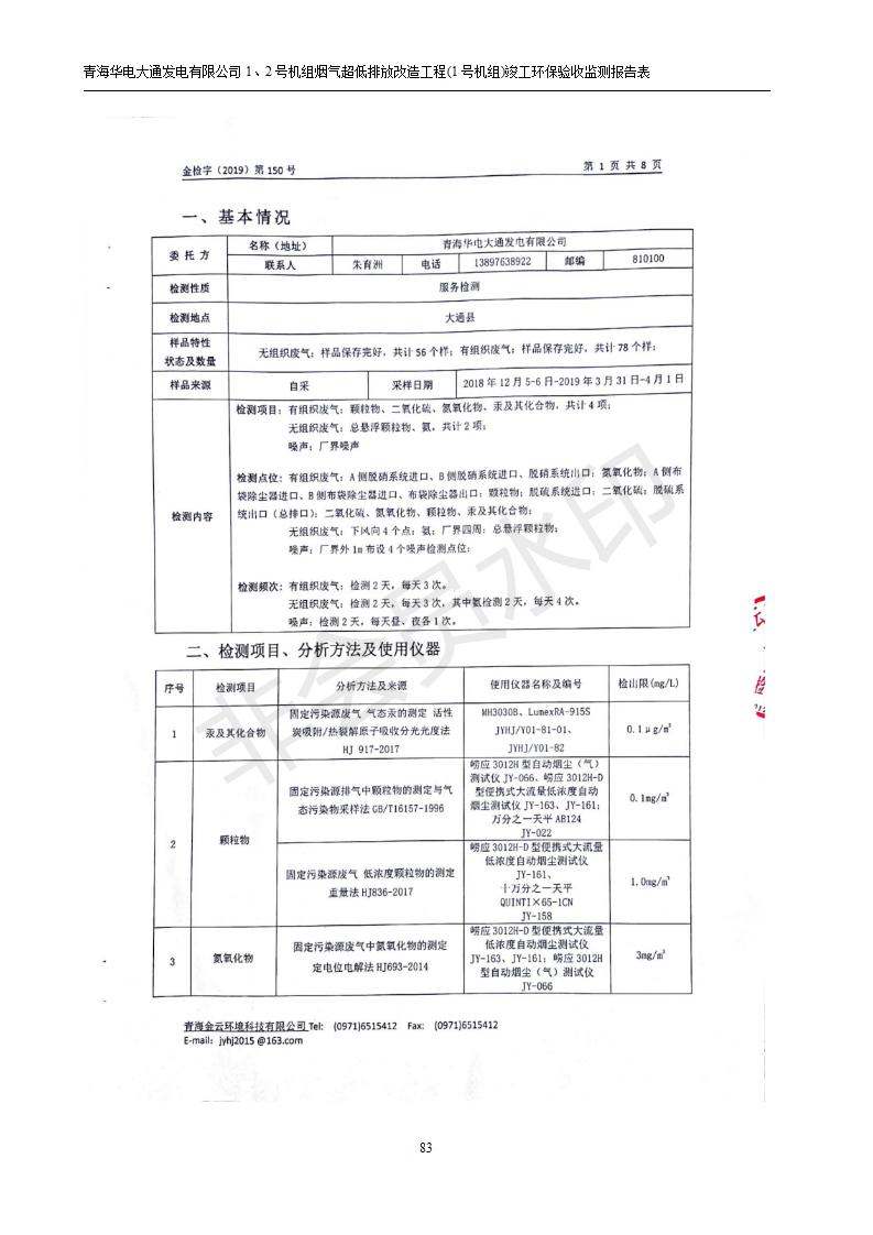 青海華電大通發(fā)電有限公司1、2號機組煙氣超低排放改造工程(1號機組) 竣工環(huán)境保護(hù)驗收監(jiān)測報告表公示發(fā)布日期:(2019-2-13) 點擊次數(shù):2646 |