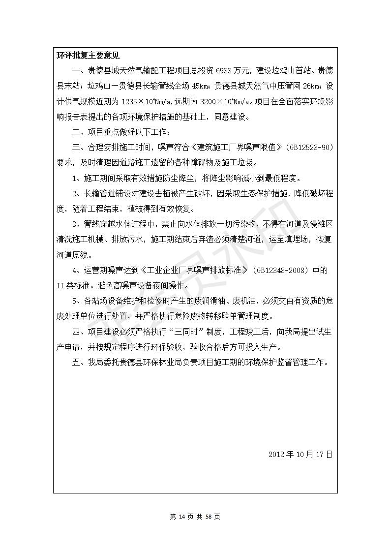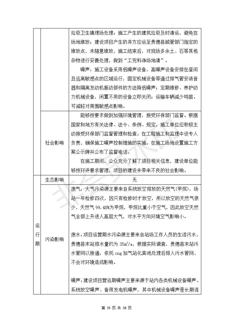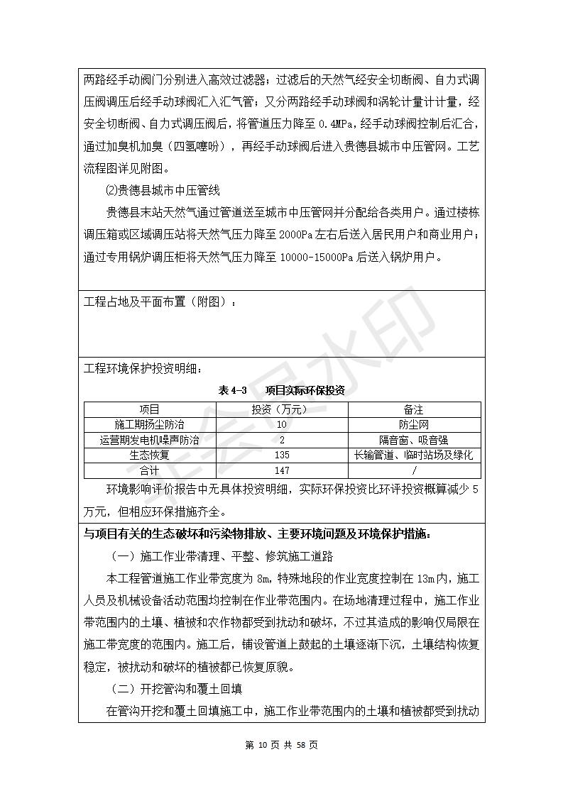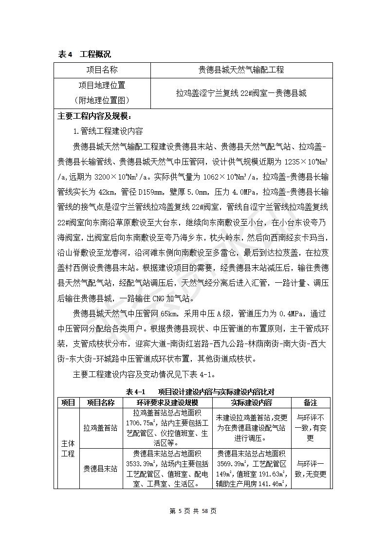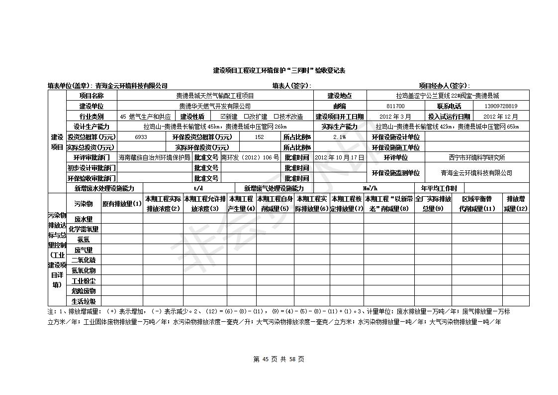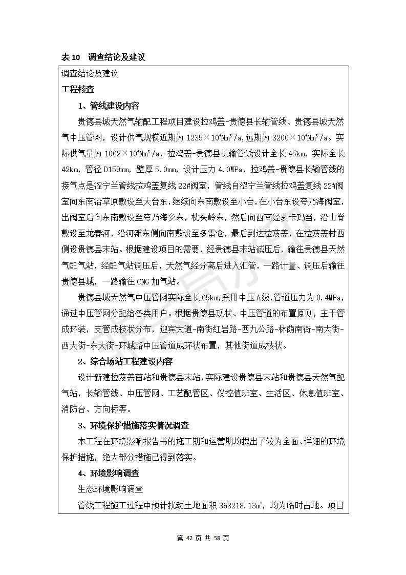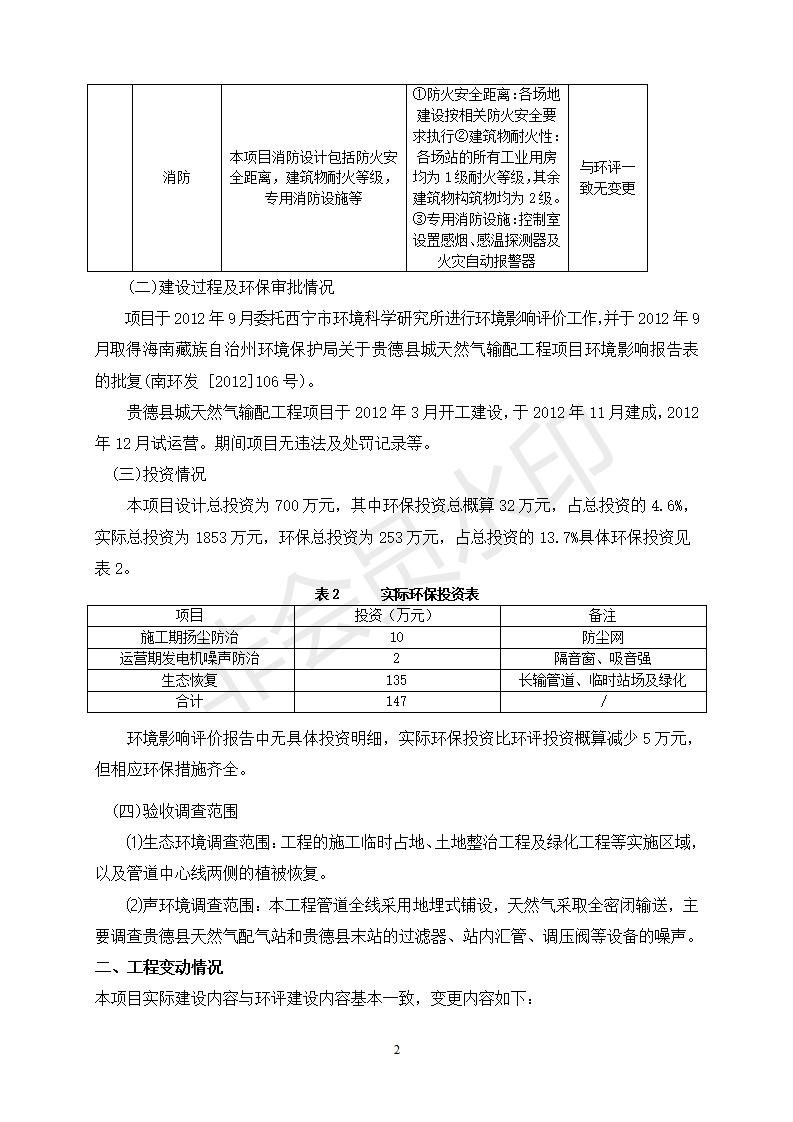 根據(jù)中華人民共和國務院令第682號《國務院關于修改〈建設項目環(huán)境保護管理條例〉的決定》和《建設項目竣工環(huán)境保護驗收暫行辦法》(國務院令682號),貴德縣城輸配管線工程竣工環(huán)境保護驗收內容(包括竣工環(huán)境保護驗收調查表和驗收意見)公示如下。 一、項目名稱:貴德縣城天然氣輸配工程 二、地點:拉雞蓋澀寧蘭復線22#閥室-貴德縣城 三、建設單位:貴德華天燃氣開發(fā)有限公司 四、建設內容:貴德縣末站、貴德縣配氣站、貴德縣中壓管網(wǎng)、拉雞蓋22#閥室-貴德縣城長輸管線 五、公示時間:二〇一九年三月十一日至二〇一九年四月八日 六、聯(lián)系人:張工 公示期間,對上述公示內容如有異議,請以書面形式反饋,個人須署真實姓名,單位須加蓋公章。