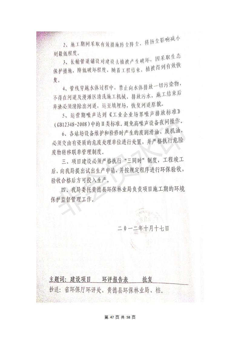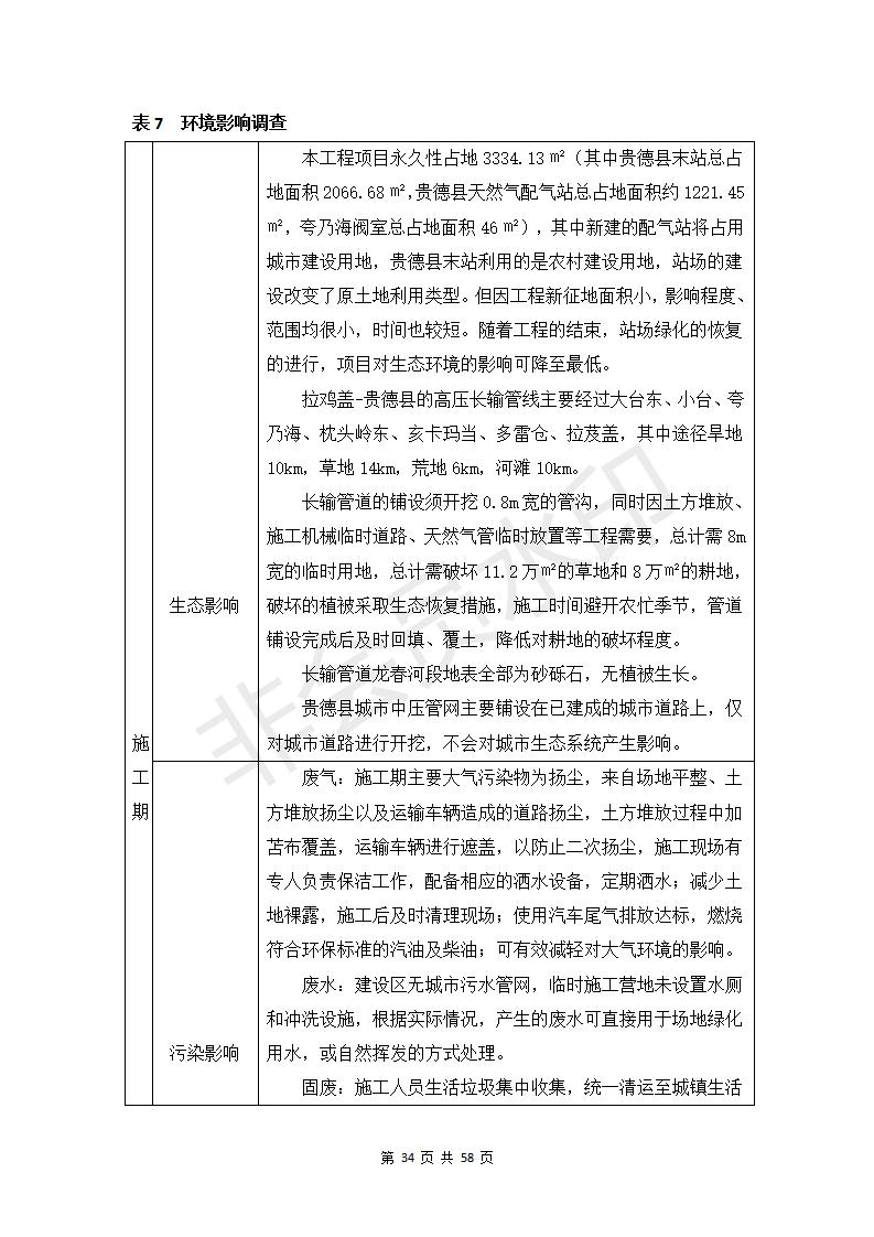 貴德縣城輸配管線工程竣工環(huán)境保護驗收調查表公示