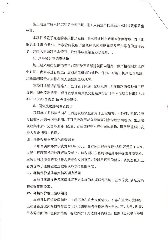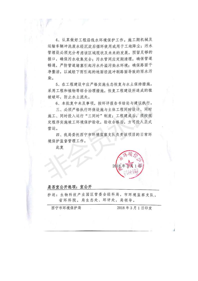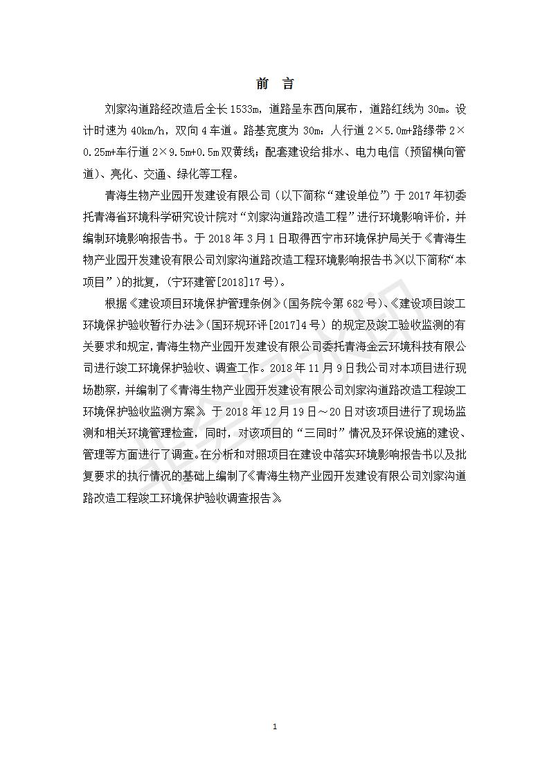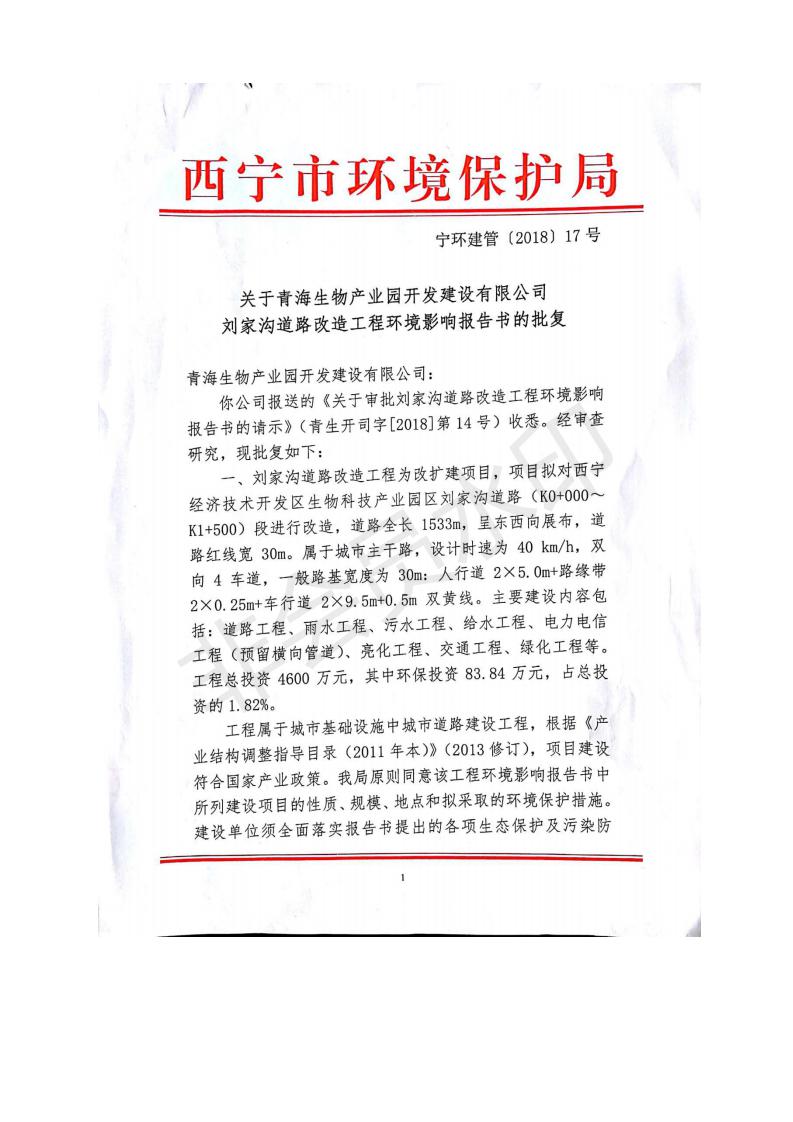 根據(jù)中華人民共和國(guó)務(wù)院令第682號(hào)《國(guó)務(wù)院關(guān)于修改〈建設(shè)項(xiàng)目環(huán)境保護(hù)管理?xiàng)l例〉的決定》和《建設(shè)項(xiàng)目竣工環(huán)境保護(hù)驗(yàn)收暫行辦法》(國(guó)務(wù)院令682號(hào)),劉家溝道路改造工程竣工環(huán)境保護(hù)驗(yàn)收內(nèi)容(包括竣工環(huán)境保護(hù)驗(yàn)收調(diào)查報(bào)告和驗(yàn)收意見(jiàn))公示如下: 一、項(xiàng)目名稱:劉家溝道路改造工程 二、地點(diǎn):青海省西寧市城北區(qū)生物園區(qū) 三、建設(shè)單位:生物產(chǎn)業(yè)園開(kāi)發(fā)建設(shè)有限公司 四、建設(shè)內(nèi)容:劉家溝道路經(jīng)改造后全長(zhǎng)1533m,道路呈東西向展布,道路紅線為30m。設(shè)計(jì)時(shí)速為40km/h,雙向4車(chē)道。 五、公示時(shí)間:二〇一九年三月十四日至二〇一九年四月十一日 六、聯(lián)系人:張工 公示期間,對(duì)上述公示內(nèi)容如有異議,請(qǐng)以書(shū)面形式反饋,個(gè)人須署真實(shí)姓名,單位須加蓋公章。