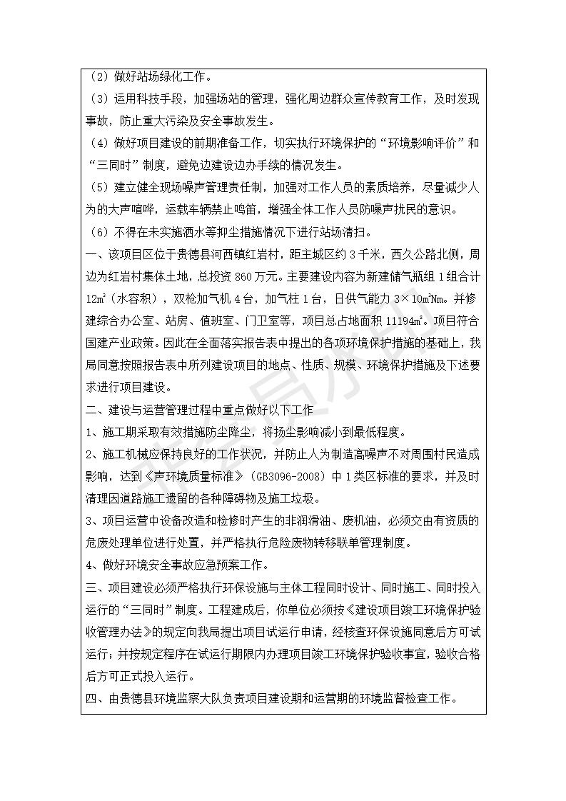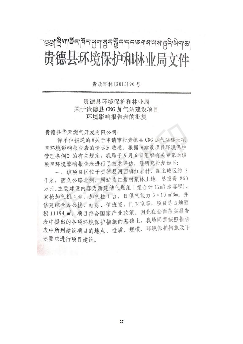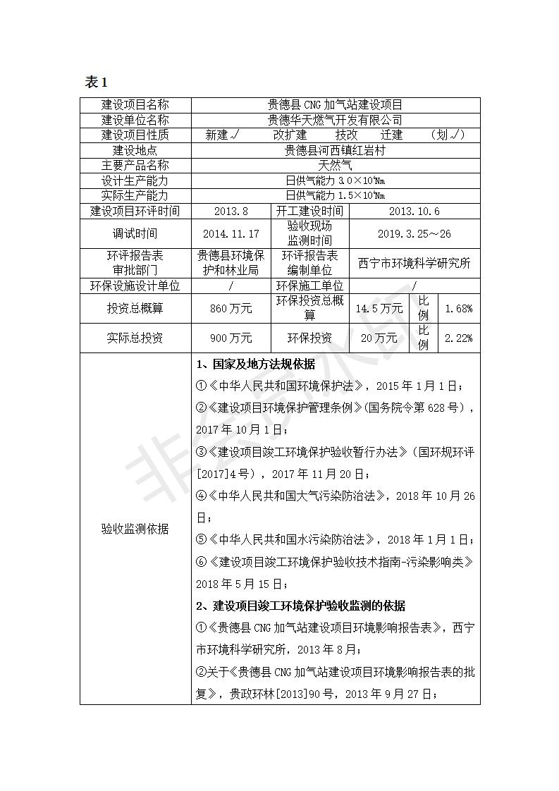 根據(jù)中華人民共和國(guó)務(wù)院令第682號(hào)《國(guó)務(wù)院關(guān)于修改〈建設(shè)項(xiàng)目環(huán)境保護(hù)管理?xiàng)l例〉的決定》和《建設(shè)項(xiàng)目竣工環(huán)境保護(hù)驗(yàn)收暫行辦法》(國(guó)務(wù)院令682號(hào)),青藏高原特色生物資源綠色開(kāi)發(fā)工程研究中心建設(shè)項(xiàng)目竣工環(huán)境保護(hù)驗(yàn)收內(nèi)容(包括竣工環(huán)境保護(hù)驗(yàn)收調(diào)查報(bào)告和驗(yàn)收意見(jiàn))公示如下: 一、項(xiàng)目名稱(chēng):貴德縣CNG加氣站建設(shè)項(xiàng)目 二、地點(diǎn):貴德縣河西鎮(zhèn)紅巖村 三、建設(shè)單位:貴德華天燃?xì)忾_(kāi)發(fā)有限公司 四、建設(shè)內(nèi)容:日供氣量為1.5×104Nm的加氣站 五、公示時(shí)間:二〇一九年五月二十九日至二〇一九年六月二十五日 六、聯(lián)系人:張工 公示期間,對(duì)上述公示內(nèi)容如有異議,請(qǐng)以書(shū)面形式反饋,個(gè)人須署真實(shí)姓名,單位須加蓋公章。