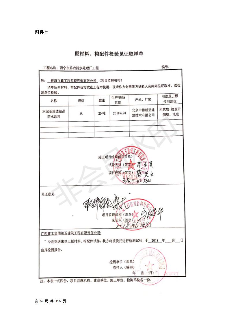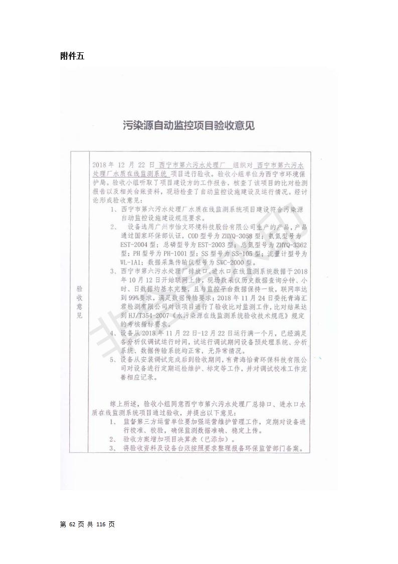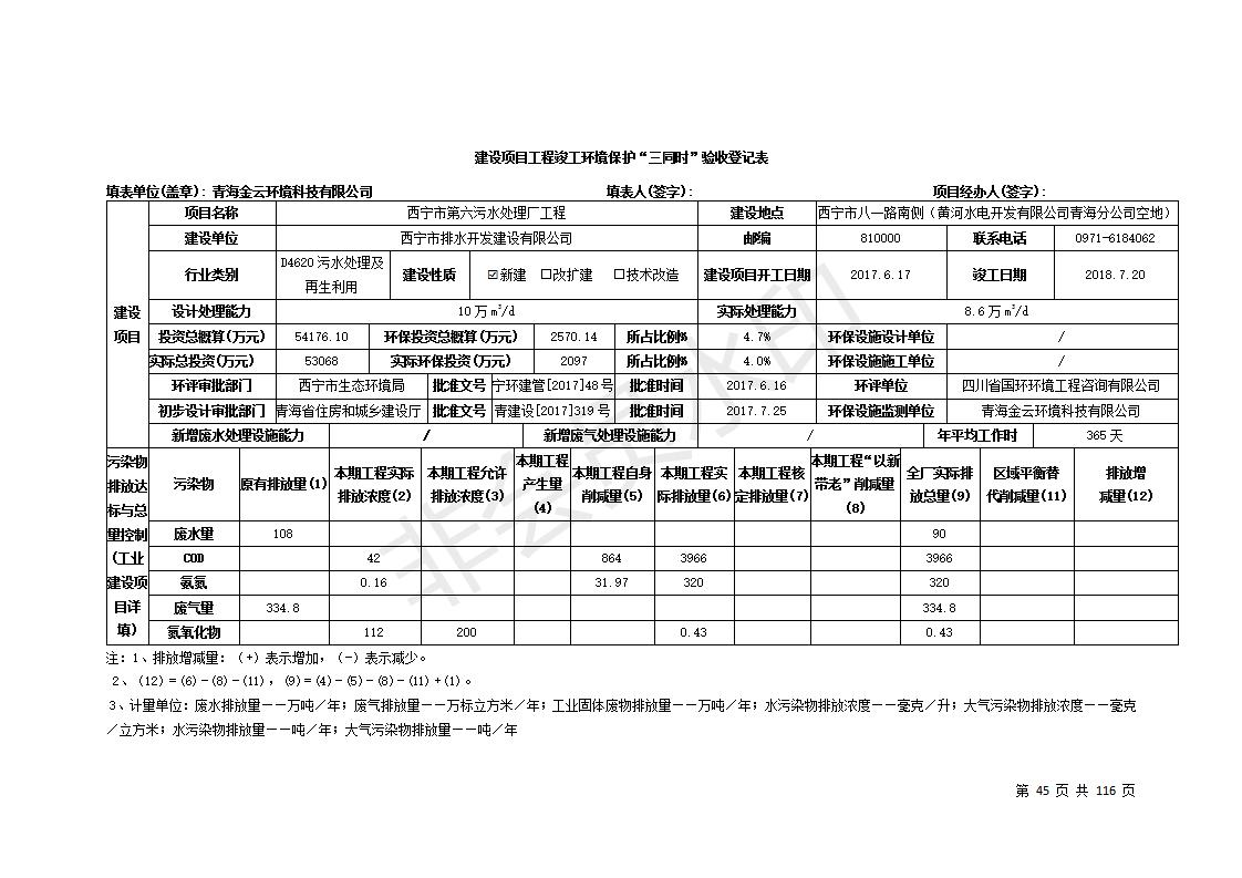 根據中華人民共和國國務院令第682號《國務院關于修改〈建設項目環(huán)境保護管理條例〉的決定》和《建設項目竣工環(huán)境保護驗收暫行辦法》(國務院令682號),西寧市第六污水處理廠工程(包括竣工環(huán)境保護驗收監(jiān)測報告和驗收意見)公示如下。 一、項目名稱:西寧市第六污水處理廠工程 二、地點:西寧市第六污水處理廠工程建于西寧市八一路南側(黃河水電開發(fā)有限公司青海分公司空地) 三、建設單位:西寧市排水開發(fā)建設有限公司 四、建設內容:處理生活污水規(guī)模為10萬m3/d污水處理廠、輔助設施、環(huán)保設施等。 五、聯(lián)系人:張工 六、聯(lián)系電話:0971-6515411 七、公示時間:二〇一九年七月十一日至二〇一九年八月七日 公示期間,對上述公示內容如有異議,請以書面形式反饋,個人須署真實姓名,單位須加蓋公章。