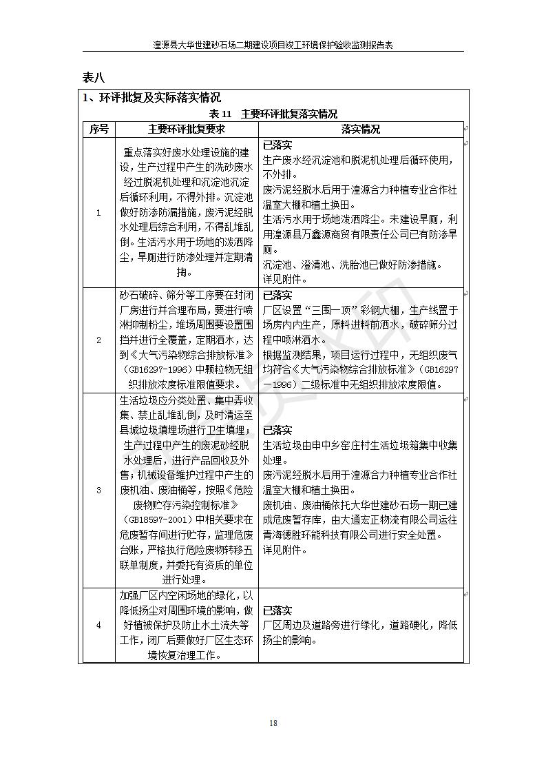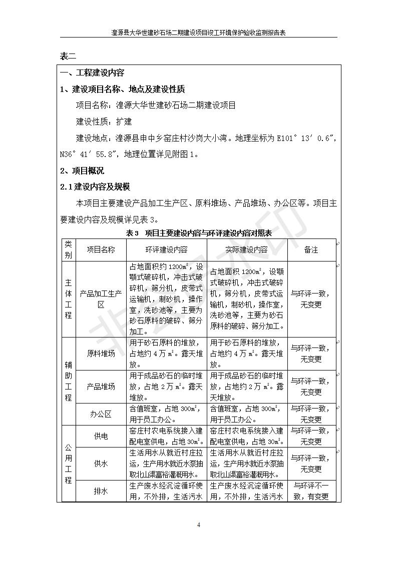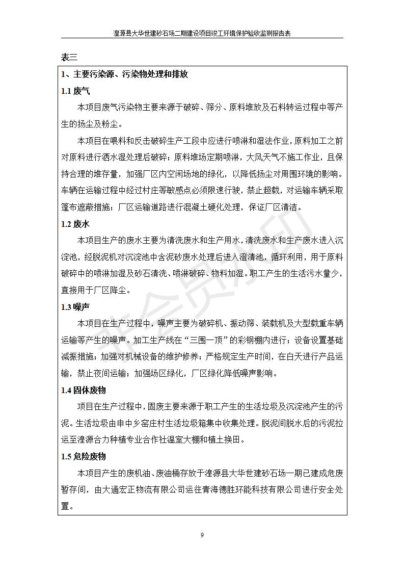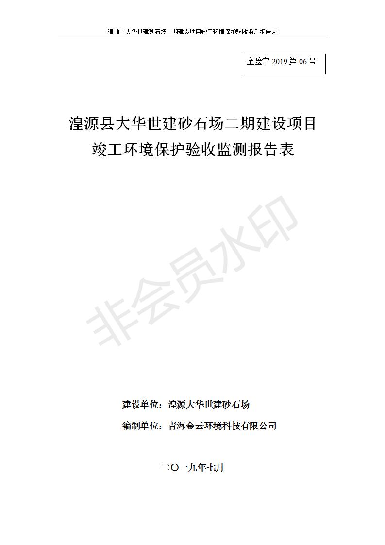 根據(jù)中華人民共和國國務(wù)院令第682號《國務(wù)院關(guān)于修改〈建設(shè)項目環(huán)境保護管理條例〉的決定》和《建設(shè)項目竣工環(huán)境保護驗收暫行辦法》(國務(wù)院令682號),湟源大華世建砂石場湟源縣大華世建砂石場二期建設(shè)項目(包括竣工環(huán)境保護驗收監(jiān)測報告表和驗收意見)公示如下。 一、項目名稱:湟源縣大華世建砂石場二期建設(shè)項目 二、地點:湟源縣申中鄉(xiāng)窯莊村沙崗大小灣 三、建設(shè)單位:湟源大華世建砂石場 四、建設(shè)內(nèi)容:項目主要建設(shè)砂石料產(chǎn)品加工生產(chǎn)區(qū)、原料堆場、產(chǎn)品堆場、辦公區(qū)等。五、聯(lián)系人:張工 六、聯(lián)系電 話:0971-6515411 七、公示時間:二〇一九年七月二十五日至二〇一九年八月二十一日公示期間,對上述公示內(nèi)容如有異議,請以書面形式反饋,個人須署真實姓名,單位須加蓋公章。