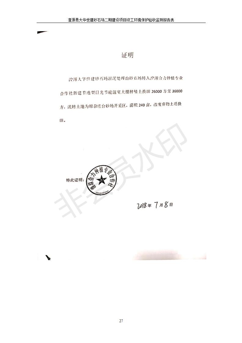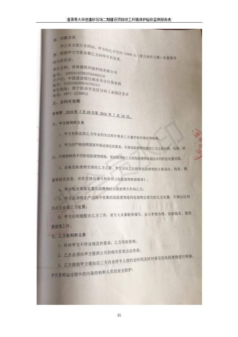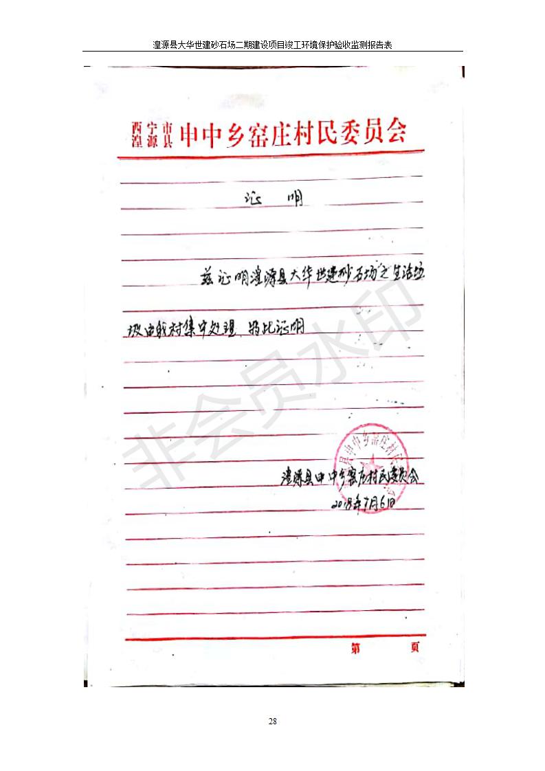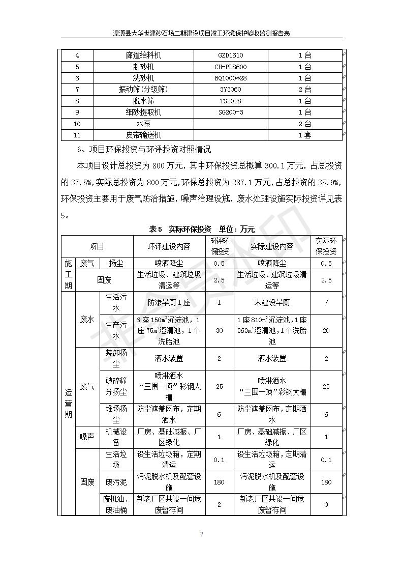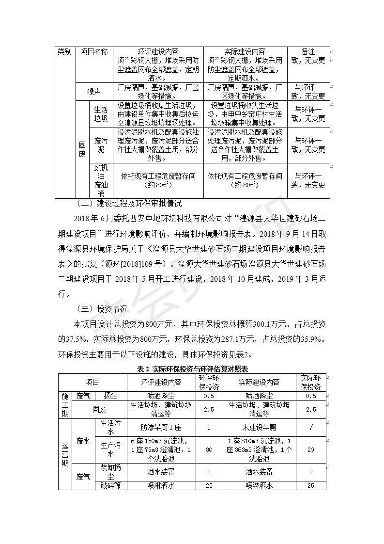 根據(jù)中華人民共和國國務(wù)院令第682號《國務(wù)院關(guān)于修改〈建設(shè)項目環(huán)境保護管理條例〉的決定》和《建設(shè)項目竣工環(huán)境保護驗收暫行辦法》(國務(wù)院令682號),湟源大華世建砂石場湟源縣大華世建砂石場二期建設(shè)項目(包括竣工環(huán)境保護驗收監(jiān)測報告表和驗收意見)公示如下。 一、項目名稱:湟源縣大華世建砂石場二期建設(shè)項目 二、地點:湟源縣申中鄉(xiāng)窯莊村沙崗大小灣 三、建設(shè)單位:湟源大華世建砂石場 四、建設(shè)內(nèi)容:項目主要建設(shè)砂石料產(chǎn)品加工生產(chǎn)區(qū)、原料堆場、產(chǎn)品堆場、辦公區(qū)等。五、聯(lián)系人:張工 六、聯(lián)系電 話:0971-6515411 七、公示時間:二〇一九年七月二十五日至二〇一九年八月二十一日公示期間,對上述公示內(nèi)容如有異議,請以書面形式反饋,個人須署真實姓名,單位須加蓋公章。