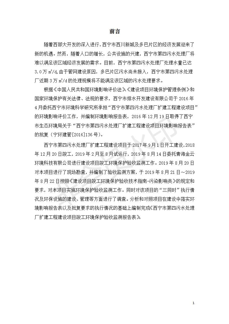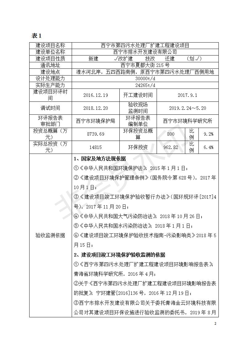 西寧市第四污水處理廠擴建工程建設(shè)項目竣工環(huán)境保護驗收監(jiān)測報告表公示發(fā)布日期:(2019-9-17) 點擊次數(shù):2673 |