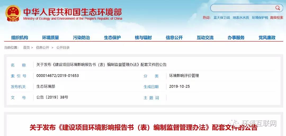 環(huán)境部發(fā)布《建設(shè)項(xiàng)目環(huán)境影響報(bào)告書(表)編制監(jiān)督管理辦法》配套文件發(fā)布日期:(2019-10-28) 點(diǎn)擊次數(shù):2492 |