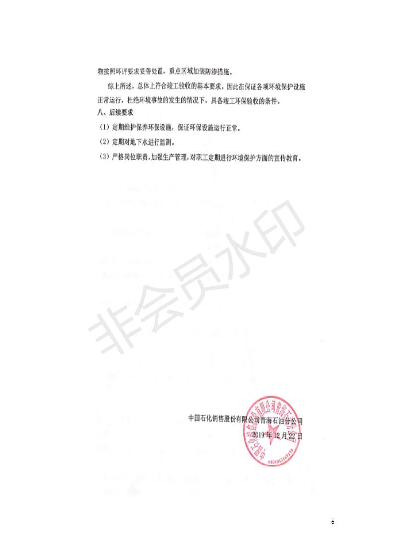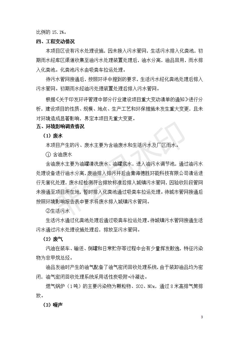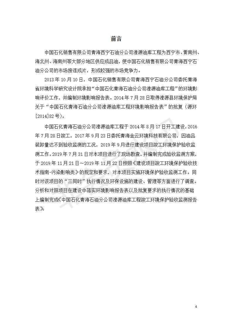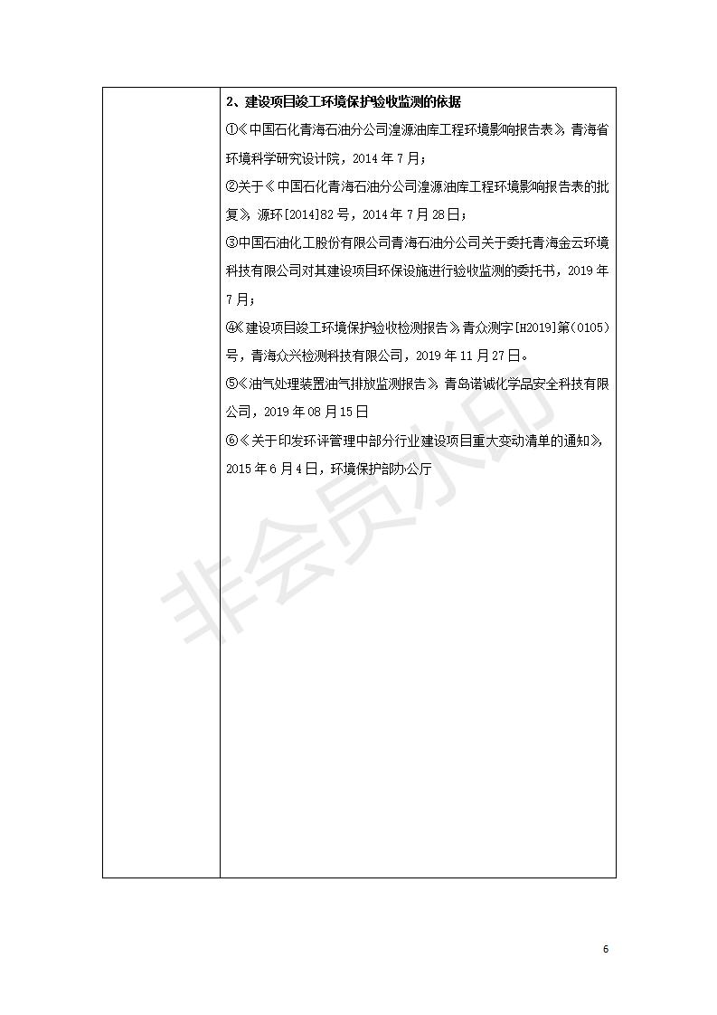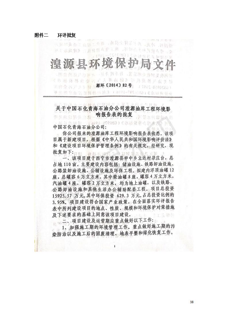 據(jù)中華人民共和國國務(wù)院令第682號《國務(wù)院關(guān)于修改〈建設(shè)項目環(huán)境保護管理條例〉的決定》和《建設(shè)項目竣工環(huán)境保護驗收暫行辦法》(國務(wù)院令682號),中國石化青海石油分公司湟源油庫工程建設(shè)項目(包括竣工環(huán)境保護驗收監(jiān)測報告表和驗收意見)公示如下。 一、項目名稱:中國石化青海石油分公司湟源油庫工程建設(shè)項目 二、地點:西寧市湟源縣申中鄉(xiāng)立達村尕莊臺 三、建設(shè)單位:中國石化銷售股份有限公司青海石油分公司 四、建設(shè)內(nèi)容:油品儲量6萬m3、其他配套設(shè)施。五、聯(lián)系人:董恒棟 六、聯(lián)系電話:18697130811 七、公示時間:二〇二〇年三月十三日至二〇二〇年四月十日 公示期間,對上述公示內(nèi)容如有異議,請以書面形式反饋,個人須署真實姓名,單位須加蓋公章。