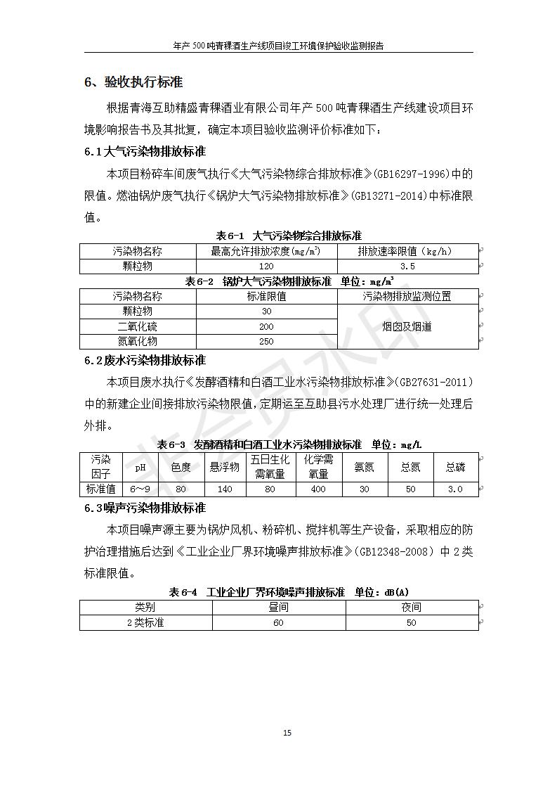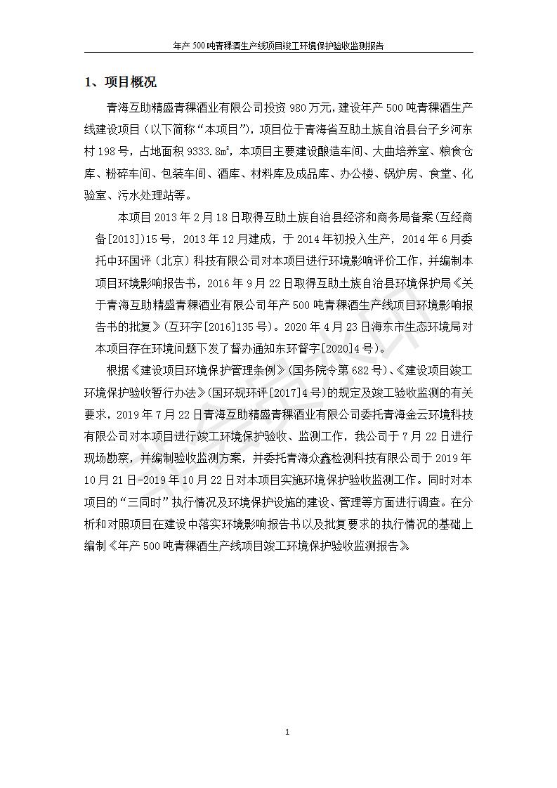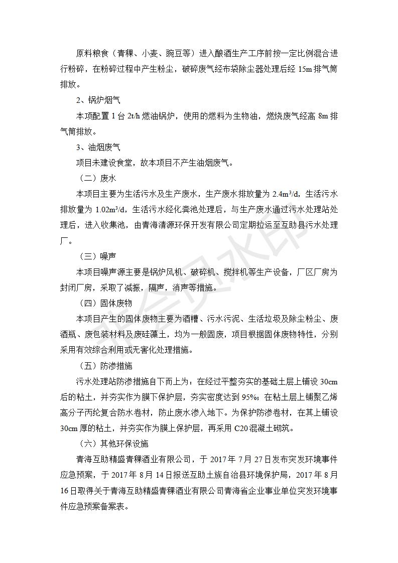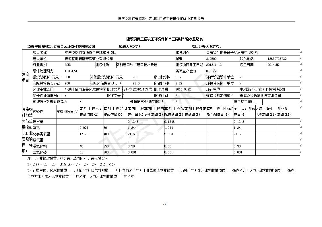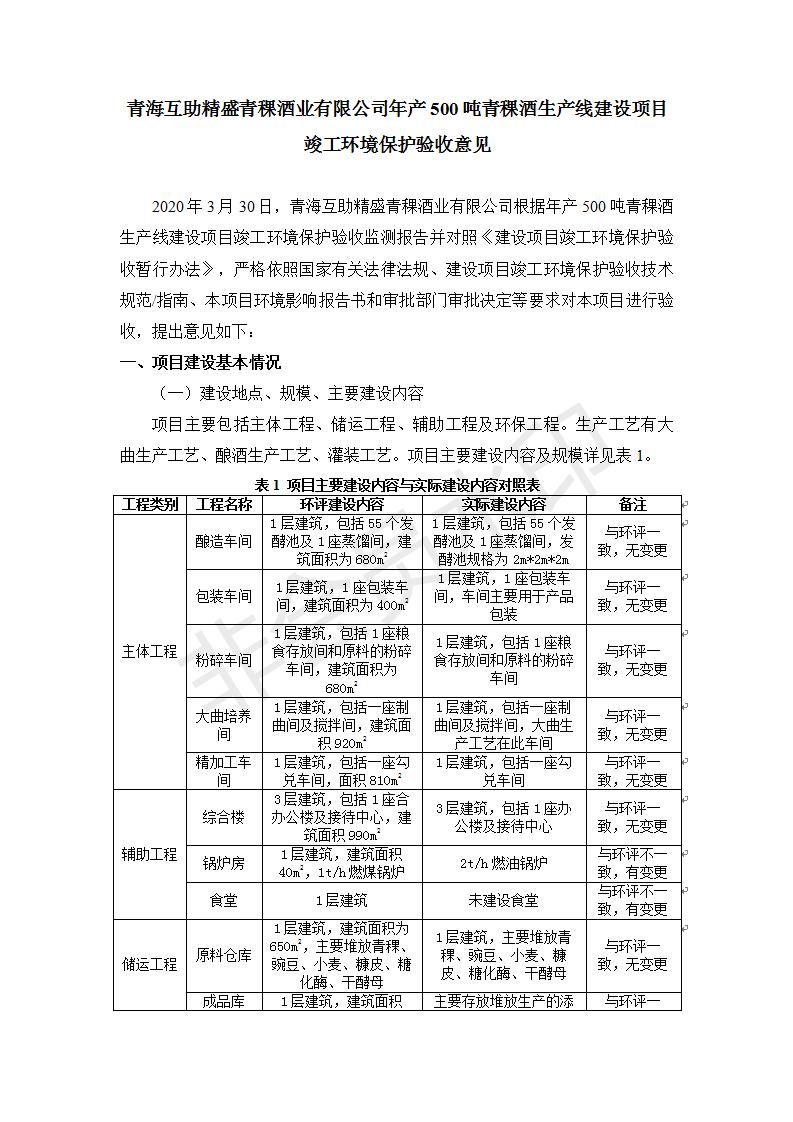 根據(jù)中華人民共和國(guó)國(guó)務(wù)院令第682號(hào)《國(guó)務(wù)院關(guān)于修改〈建設(shè)項(xiàng)目環(huán)境保護(hù)管理?xiàng)l例〉的決定》和《建設(shè)項(xiàng)目竣工環(huán)境保護(hù)驗(yàn)收暫行辦法》(國(guó)務(wù)院令682號(hào)),綜合檢測(cè)實(shí)驗(yàn)室建設(shè)項(xiàng)目(包括竣工環(huán)境保護(hù)驗(yàn)收監(jiān)測(cè)報(bào)告表和驗(yàn)收意見)公示如下。 一、項(xiàng)目名稱:青;ブ⑶囡茦I(yè)有限公司年產(chǎn)500噸青稞酒業(yè)生產(chǎn)線建設(shè)項(xiàng)目 二、地點(diǎn):青海省海東市互助土族自治縣臺(tái)子鄉(xiāng)河?xùn)|村198號(hào)