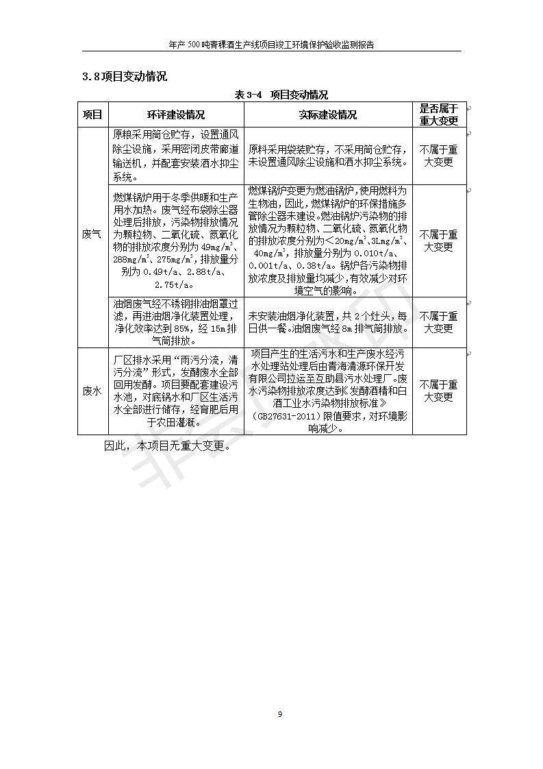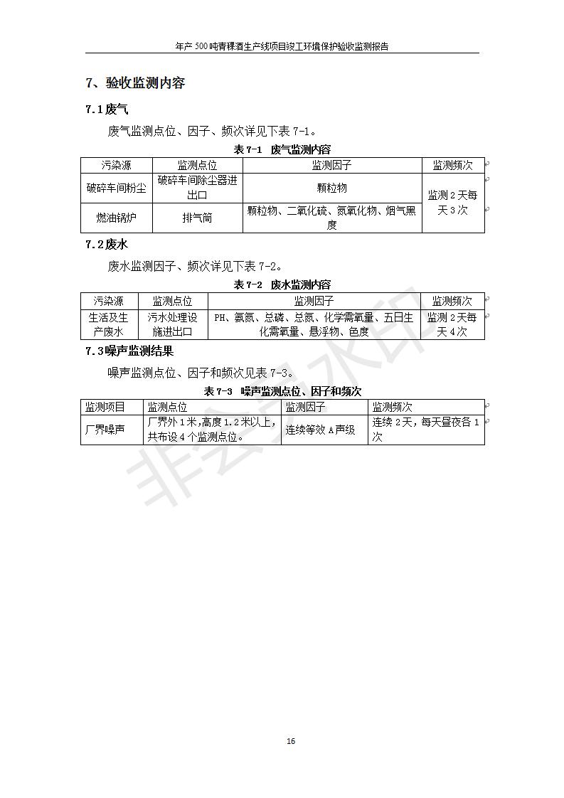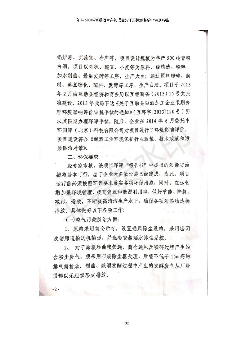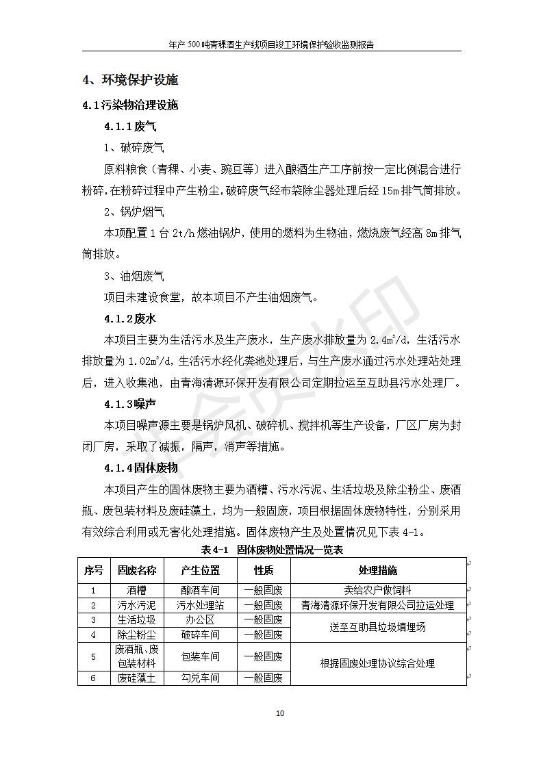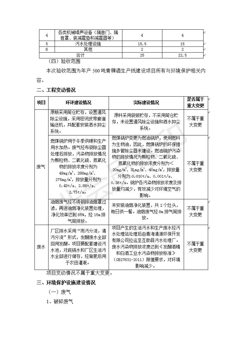 根據(jù)中華人民共和國(guó)國(guó)務(wù)院令第682號(hào)《國(guó)務(wù)院關(guān)于修改〈建設(shè)項(xiàng)目環(huán)境保護(hù)管理?xiàng)l例〉的決定》和《建設(shè)項(xiàng)目竣工環(huán)境保護(hù)驗(yàn)收暫行辦法》(國(guó)務(wù)院令682號(hào)),綜合檢測(cè)實(shí)驗(yàn)室建設(shè)項(xiàng)目(包括竣工環(huán)境保護(hù)驗(yàn)收監(jiān)測(cè)報(bào)告表和驗(yàn)收意見)公示如下。 一、項(xiàng)目名稱:青;ブ⑶囡茦I(yè)有限公司年產(chǎn)500噸青稞酒業(yè)生產(chǎn)線建設(shè)項(xiàng)目 二、地點(diǎn):青海省海東市互助土族自治縣臺(tái)子鄉(xiāng)河?xùn)|村198號(hào)