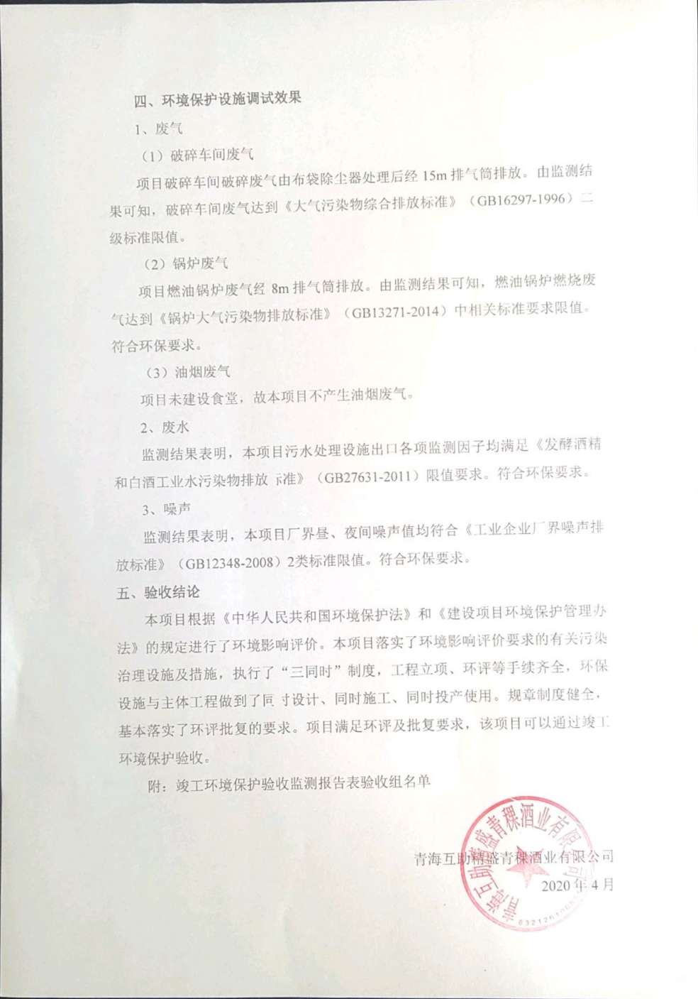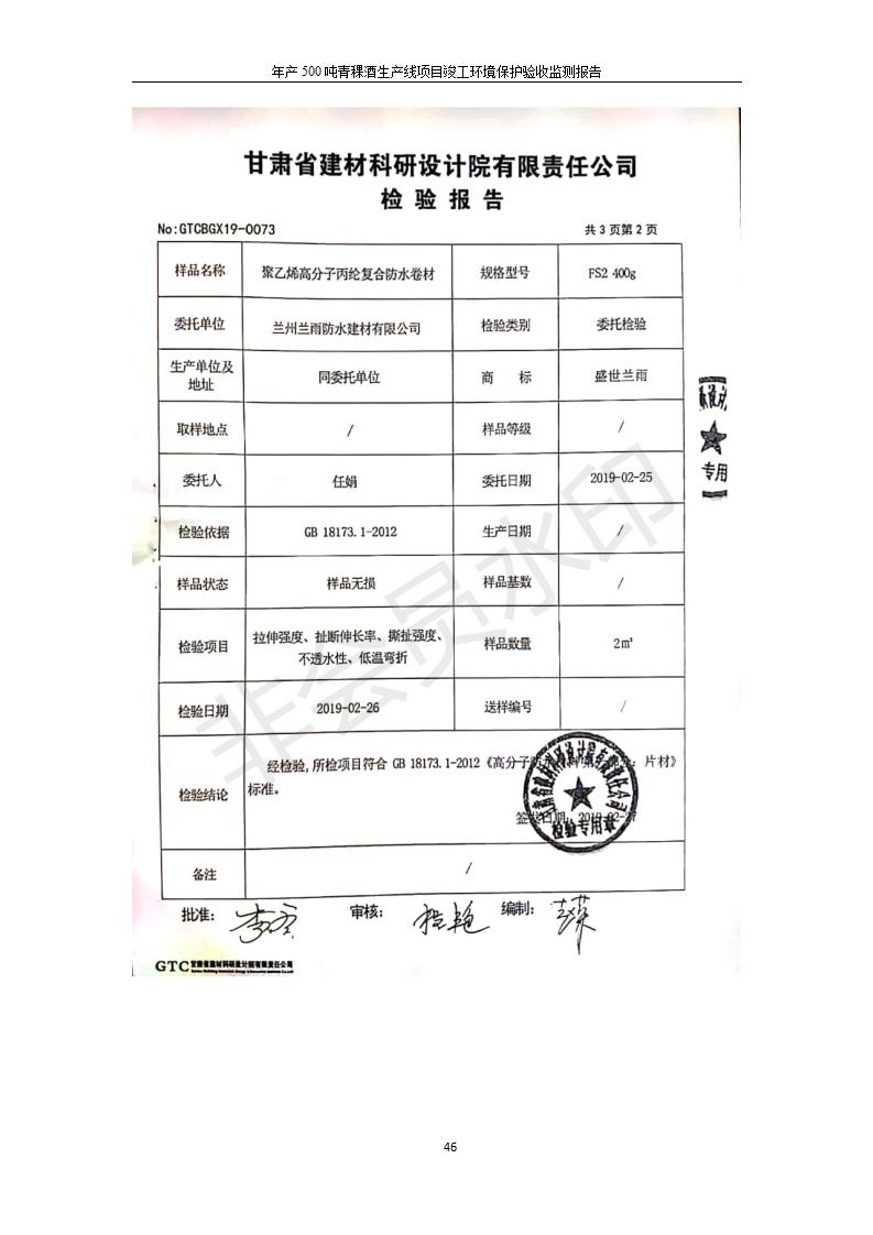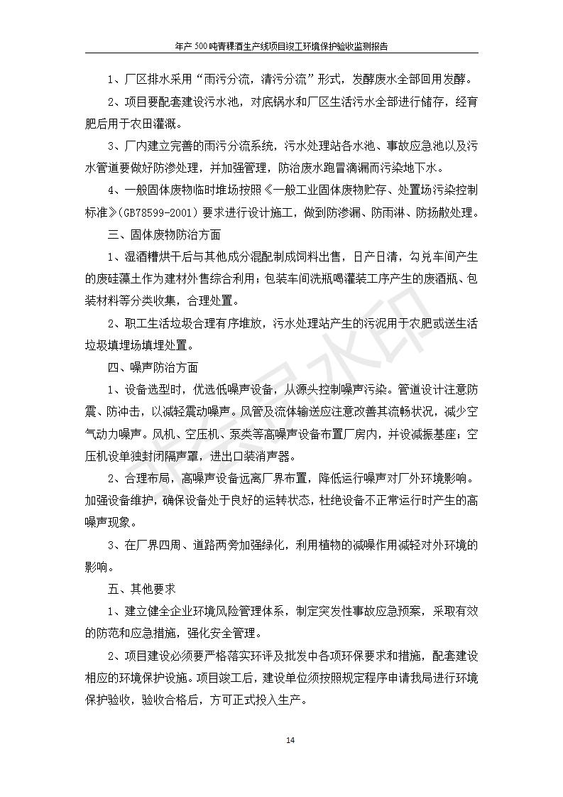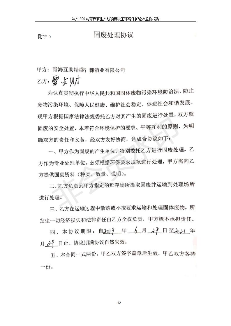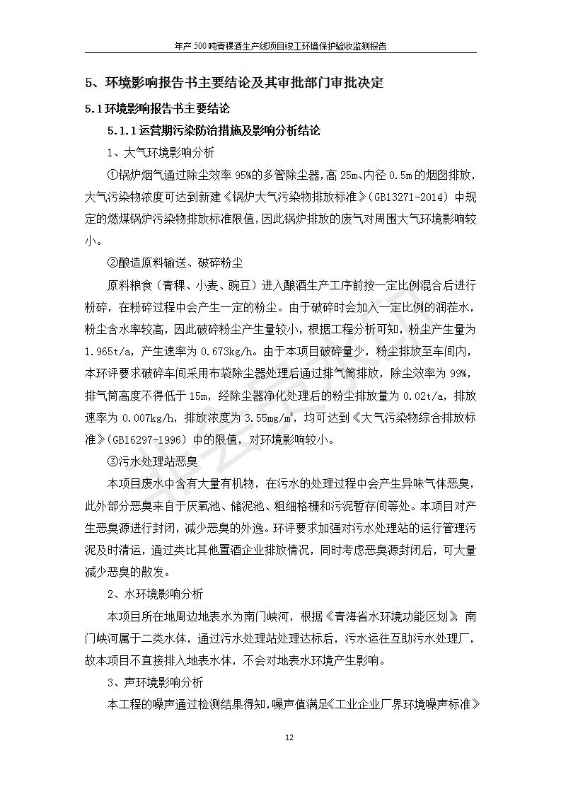 根據(jù)中華人民共和國(guó)國(guó)務(wù)院令第682號(hào)《國(guó)務(wù)院關(guān)于修改〈建設(shè)項(xiàng)目環(huán)境保護(hù)管理?xiàng)l例〉的決定》和《建設(shè)項(xiàng)目竣工環(huán)境保護(hù)驗(yàn)收暫行辦法》(國(guó)務(wù)院令682號(hào)),綜合檢測(cè)實(shí)驗(yàn)室建設(shè)項(xiàng)目(包括竣工環(huán)境保護(hù)驗(yàn)收監(jiān)測(cè)報(bào)告表和驗(yàn)收意見)公示如下。 一、項(xiàng)目名稱:青;ブ⑶囡茦I(yè)有限公司年產(chǎn)500噸青稞酒業(yè)生產(chǎn)線建設(shè)項(xiàng)目 二、地點(diǎn):青海省海東市互助土族自治縣臺(tái)子鄉(xiāng)河?xùn)|村198號(hào)