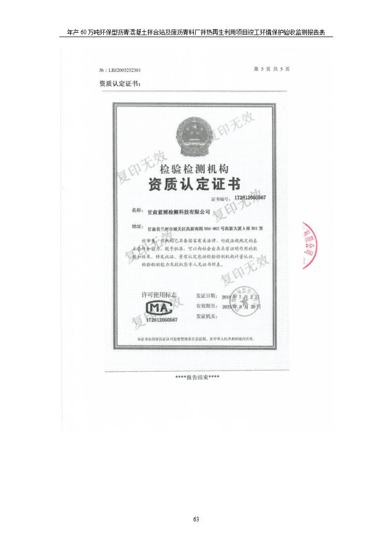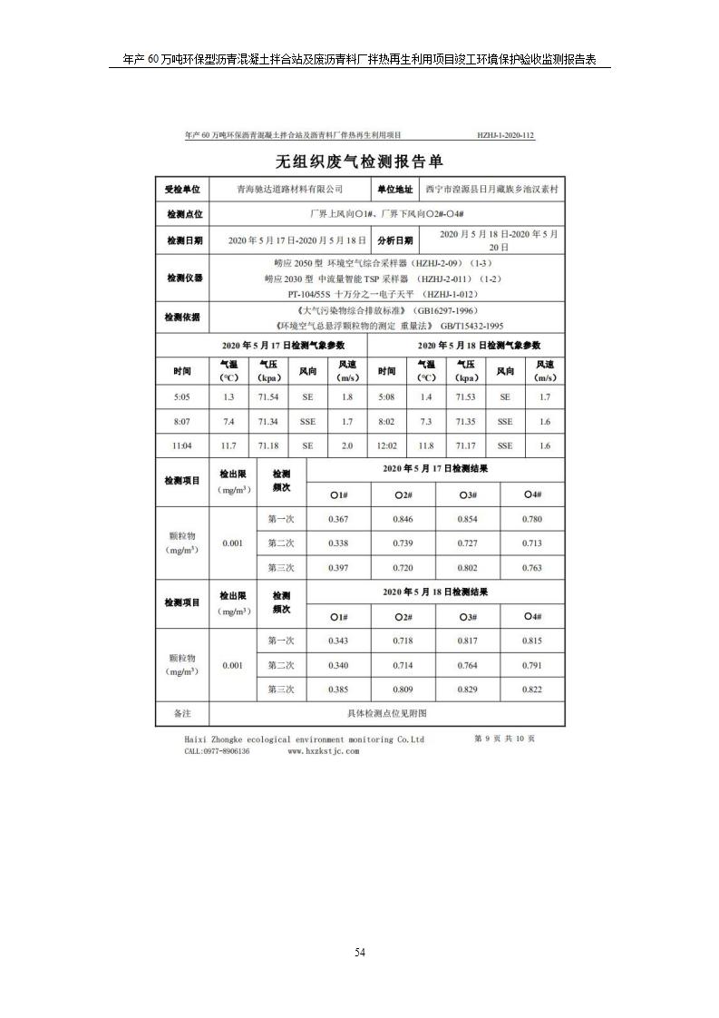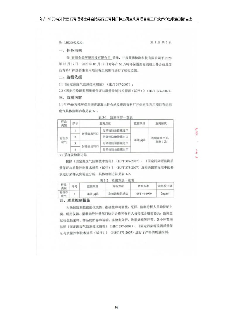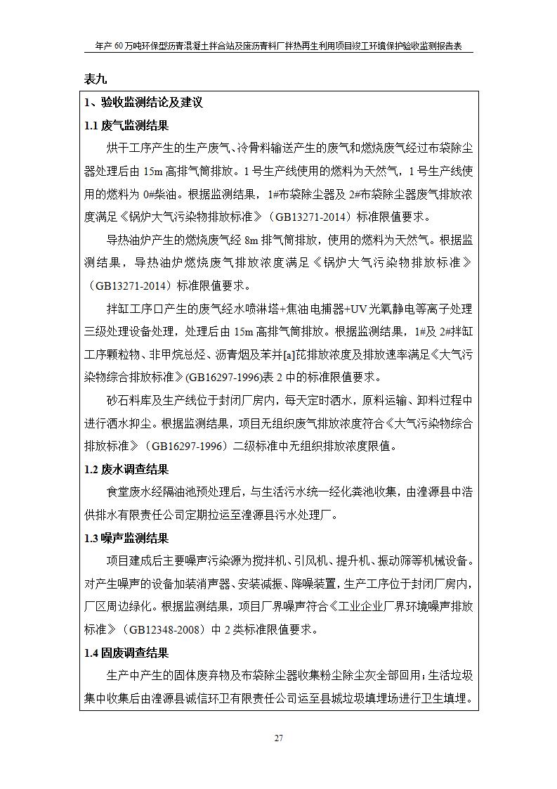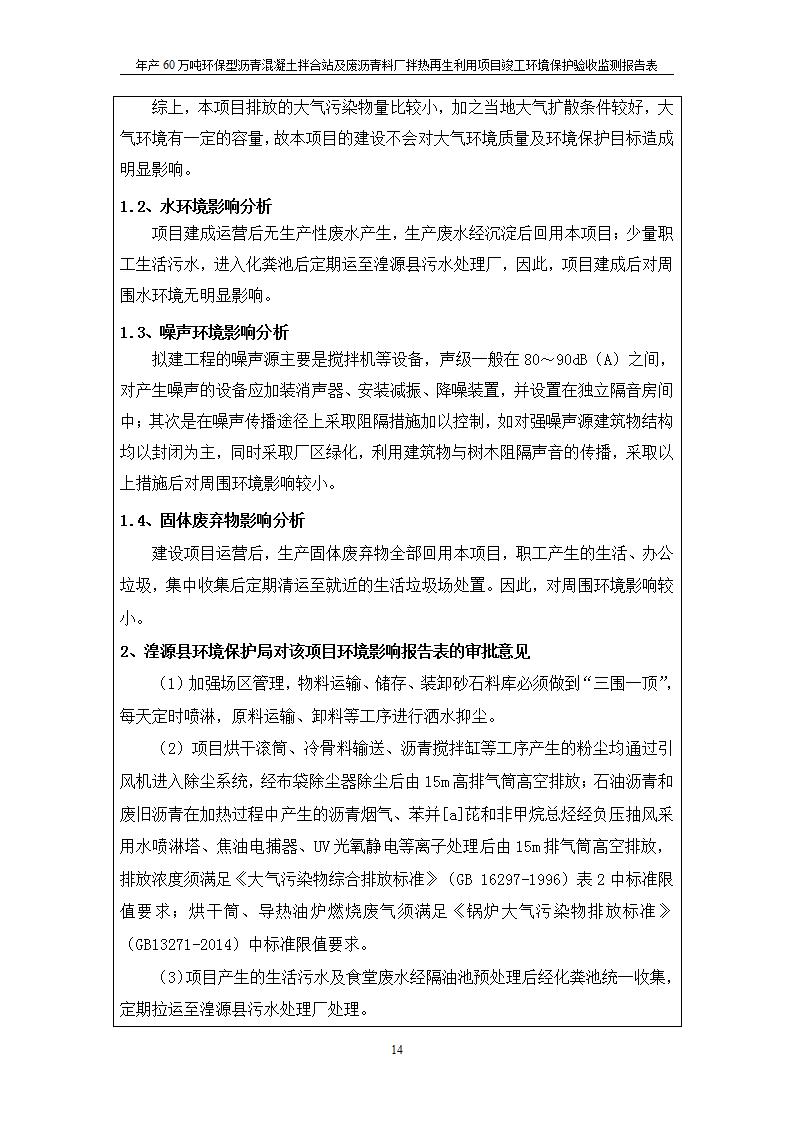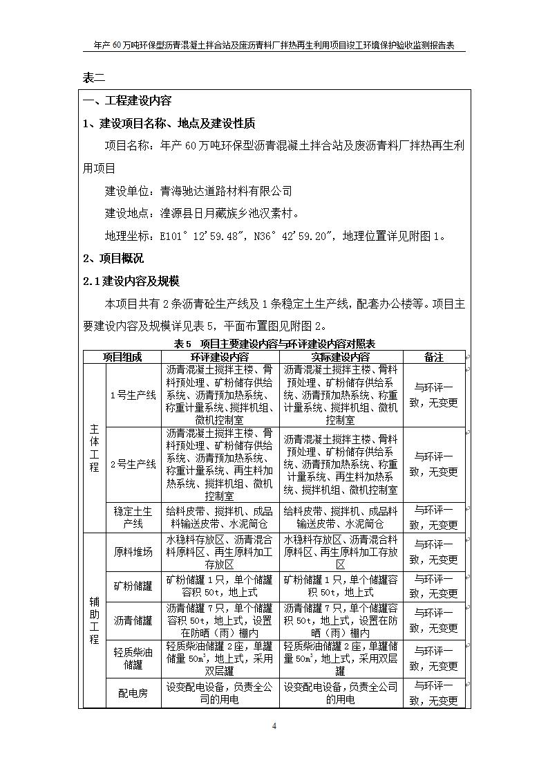 根據中華人民共和國國務院令第682號《國務院關于修改〈建設項目環(huán)境保護管理條例〉的決定》和《建設項目竣工環(huán)境保護驗收暫行辦法》(國務院令682號),青海馳達道路材料有限公司年產60萬噸環(huán)保型瀝青混凝土拌合站及廢瀝青料廠拌熱再生利用項目竣工環(huán)境保護驗收監(jiān)測報告表公示如下。 一、項目名稱:年產60萬噸環(huán)保型瀝青混凝土拌合站及廢瀝青料廠拌熱再生利用項目竣工環(huán)境保護驗收監(jiān)測報告表 二、地點:湟源縣日月藏族鄉(xiāng)池漢素村 三、建設單位:青海馳達道路材料有限公司 四、建設內容:本項目共有2條瀝青砼生產線及1條穩(wěn)定土生產線,配套辦公樓等。 五、聯(lián)系人:楊工 六、聯(lián)系電 話:0971-6515411 七、公示時間:二〇二〇年七月六日至二〇二〇年七月三十一日 公示期間,對上述公示內容如有異議,請以書面形式反饋,個人須署真實姓名,單位須加蓋公章。