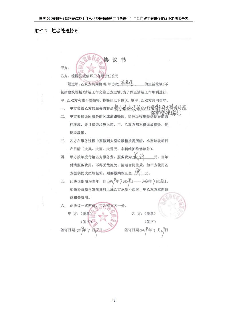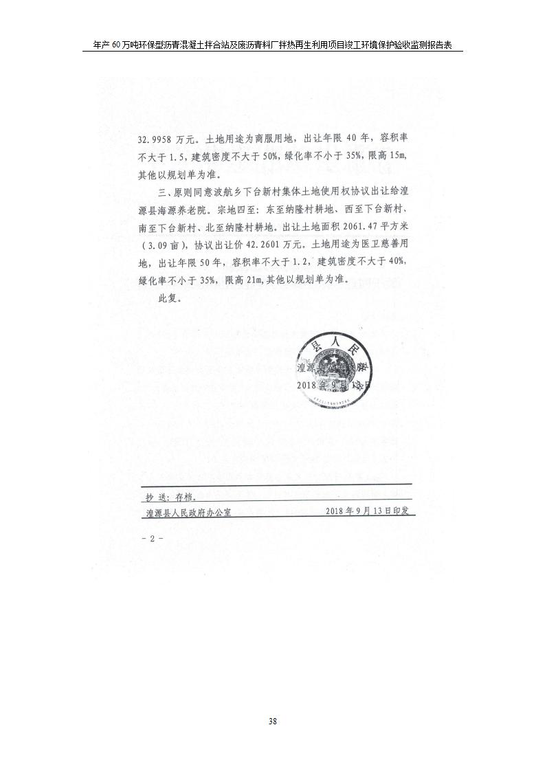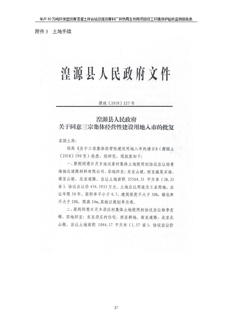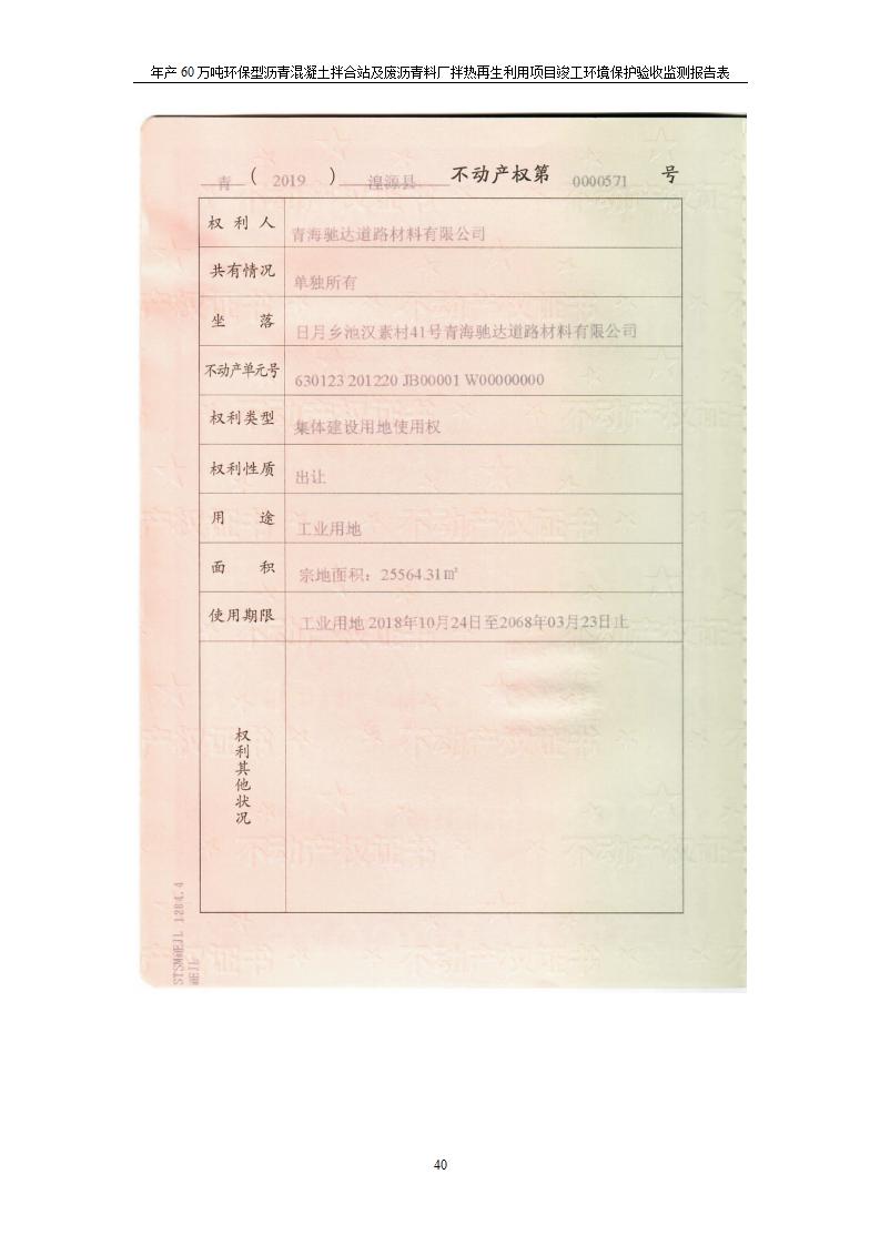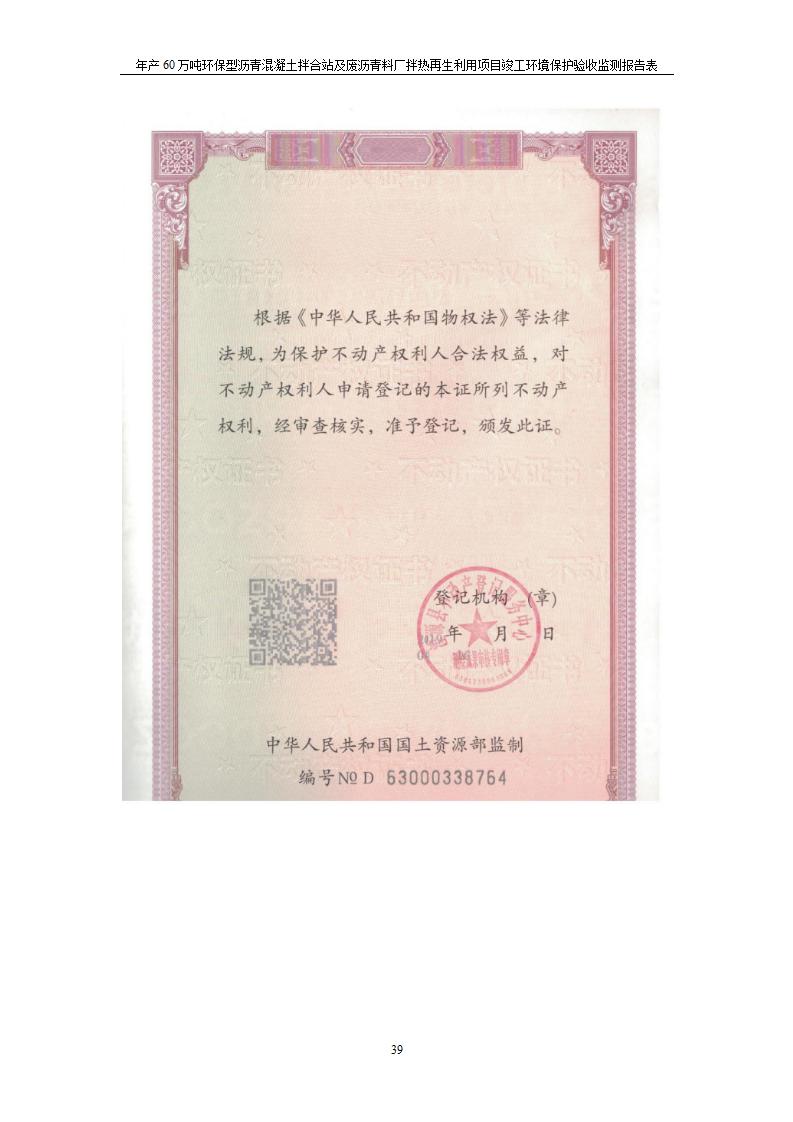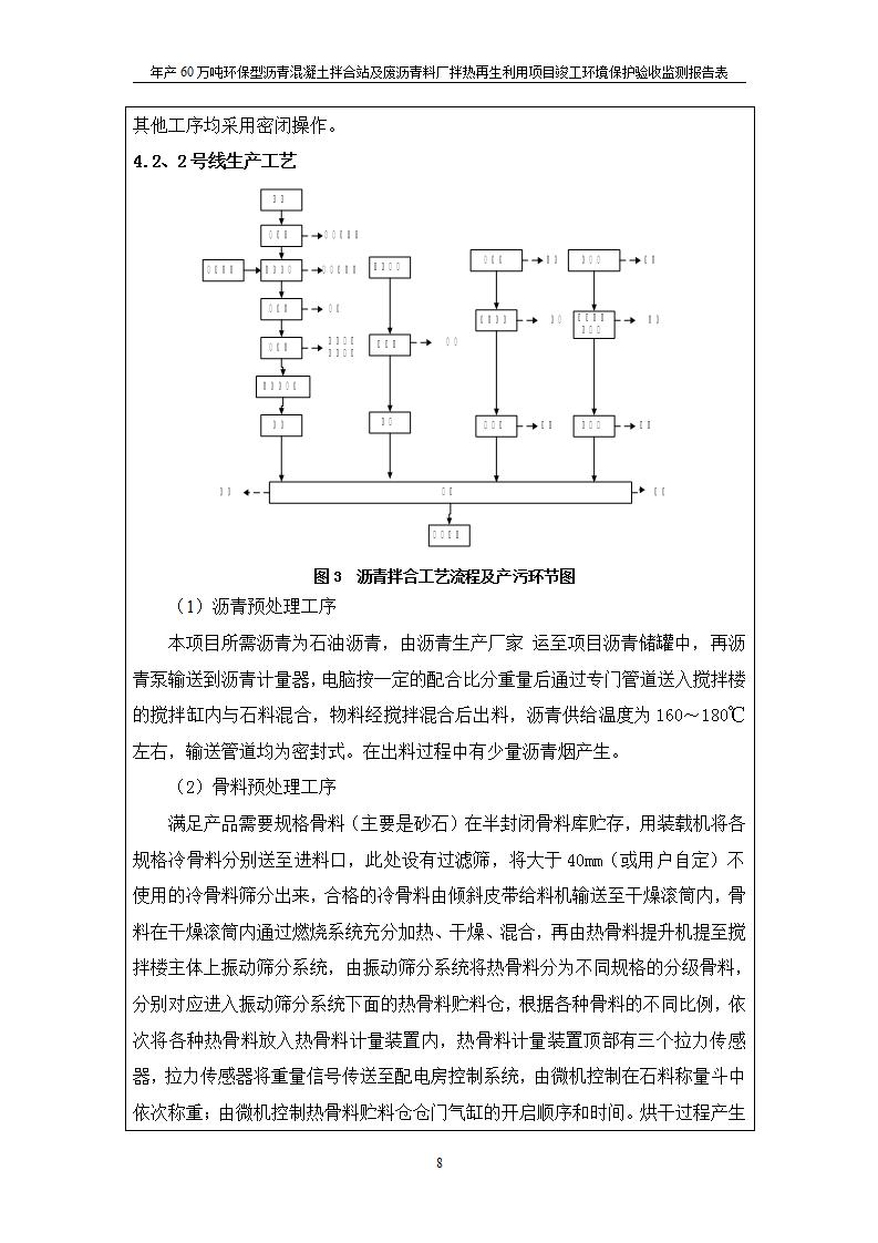 根據中華人民共和國國務院令第682號《國務院關于修改〈建設項目環(huán)境保護管理條例〉的決定》和《建設項目竣工環(huán)境保護驗收暫行辦法》(國務院令682號),青海馳達道路材料有限公司年產60萬噸環(huán)保型瀝青混凝土拌合站及廢瀝青料廠拌熱再生利用項目竣工環(huán)境保護驗收監(jiān)測報告表公示如下。 一、項目名稱:年產60萬噸環(huán)保型瀝青混凝土拌合站及廢瀝青料廠拌熱再生利用項目竣工環(huán)境保護驗收監(jiān)測報告表 二、地點:湟源縣日月藏族鄉(xiāng)池漢素村 三、建設單位:青海馳達道路材料有限公司 四、建設內容:本項目共有2條瀝青砼生產線及1條穩(wěn)定土生產線,配套辦公樓等。 五、聯(lián)系人:楊工 六、聯(lián)系電 話:0971-6515411 七、公示時間:二〇二〇年七月六日至二〇二〇年七月三十一日 公示期間,對上述公示內容如有異議,請以書面形式反饋,個人須署真實姓名,單位須加蓋公章。
