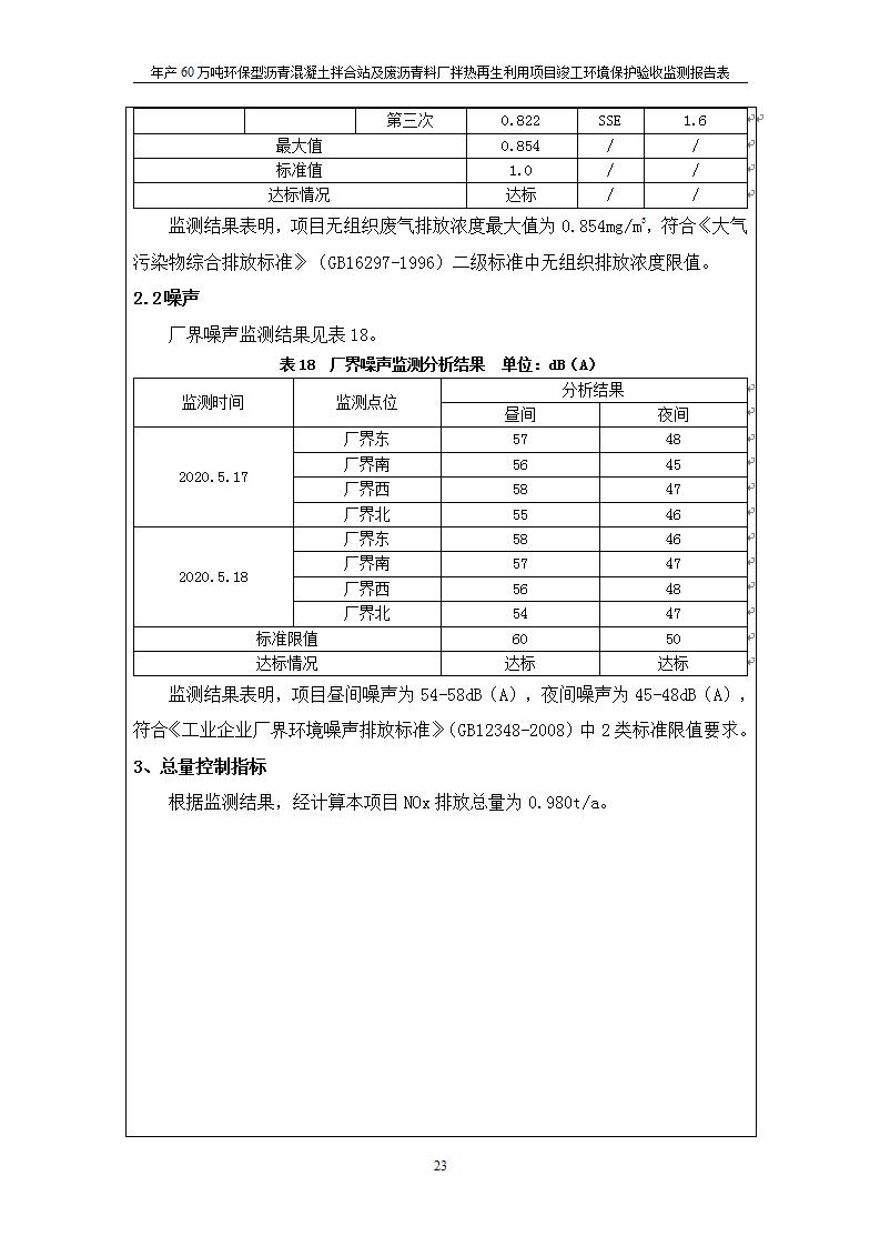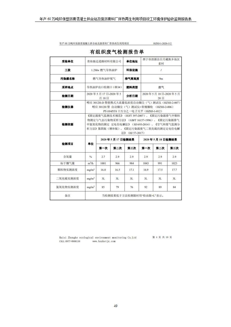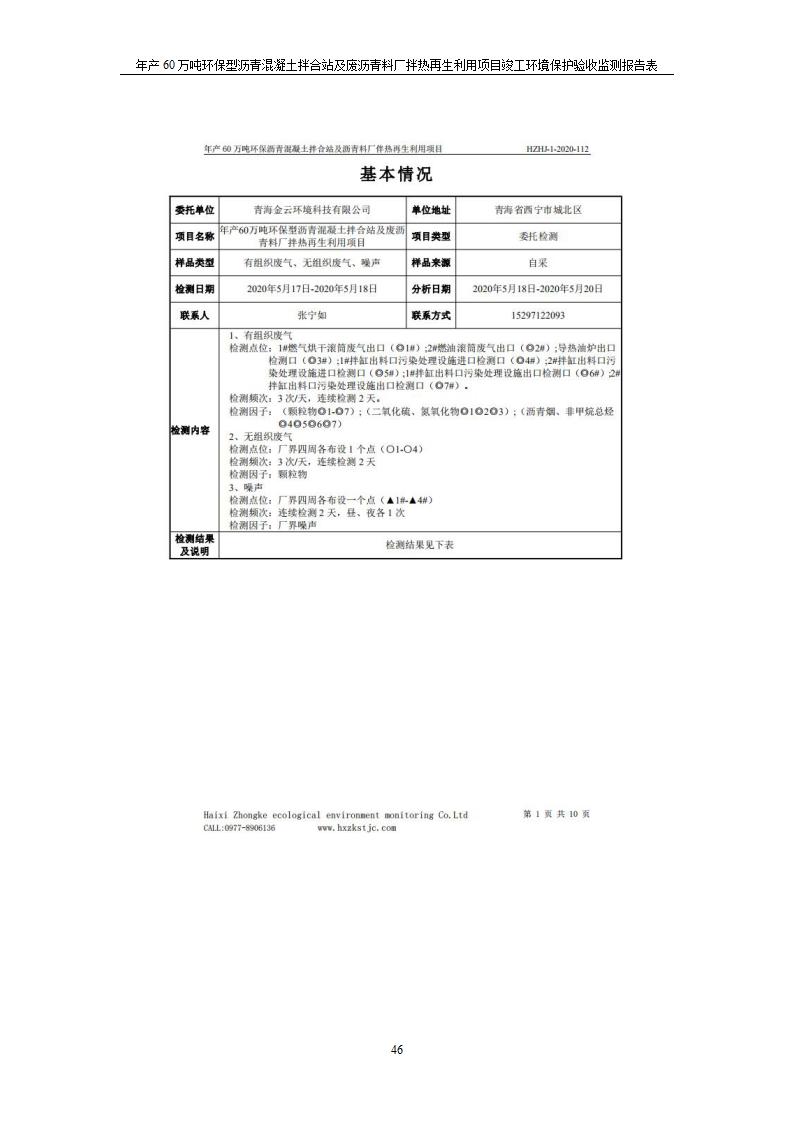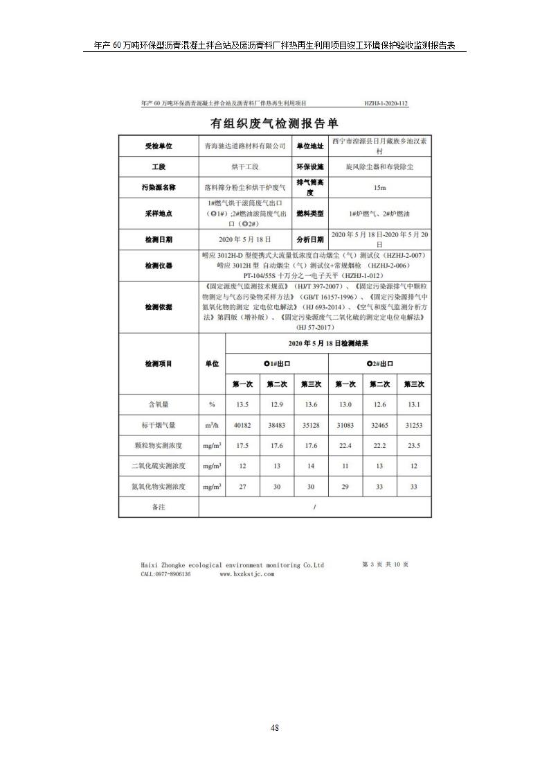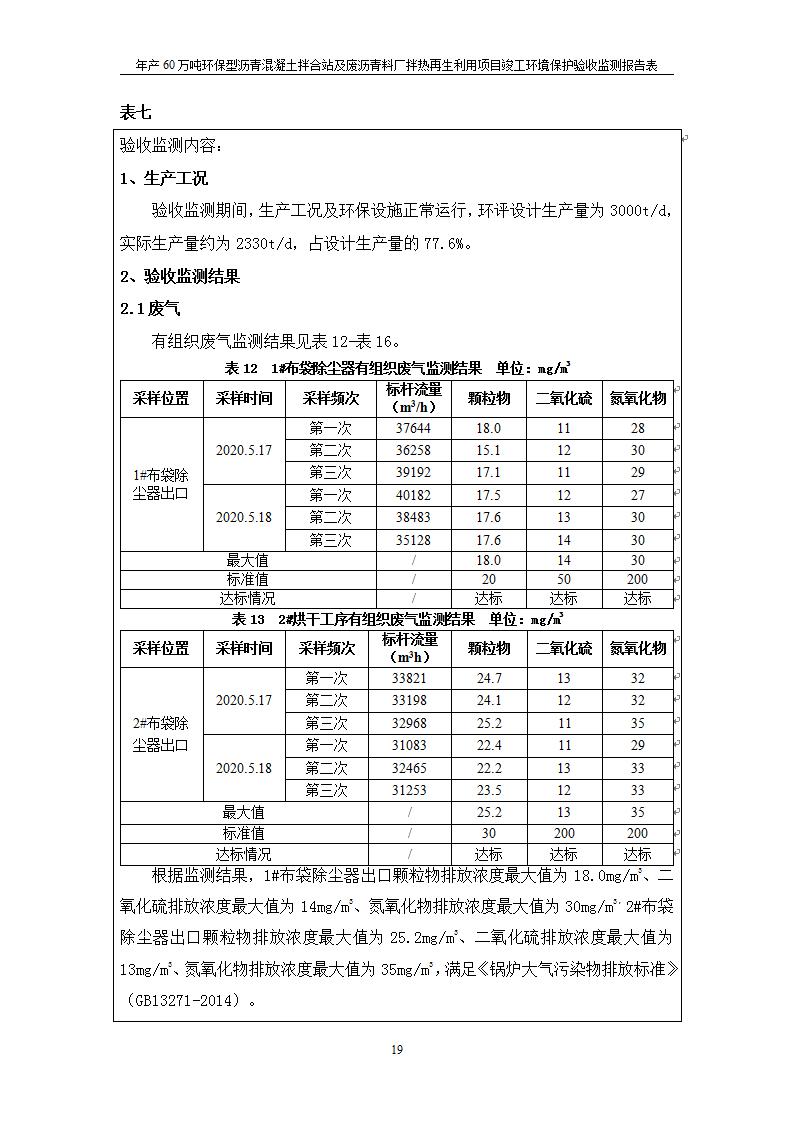 年產60萬噸環(huán)保型瀝青混凝土拌合站及廢瀝青料廠拌熱再生利用項目竣工環(huán)境保護驗收監(jiān)測報告表公示發(fā)布日期:(2020-7-6) 點擊次數(shù):3934 |