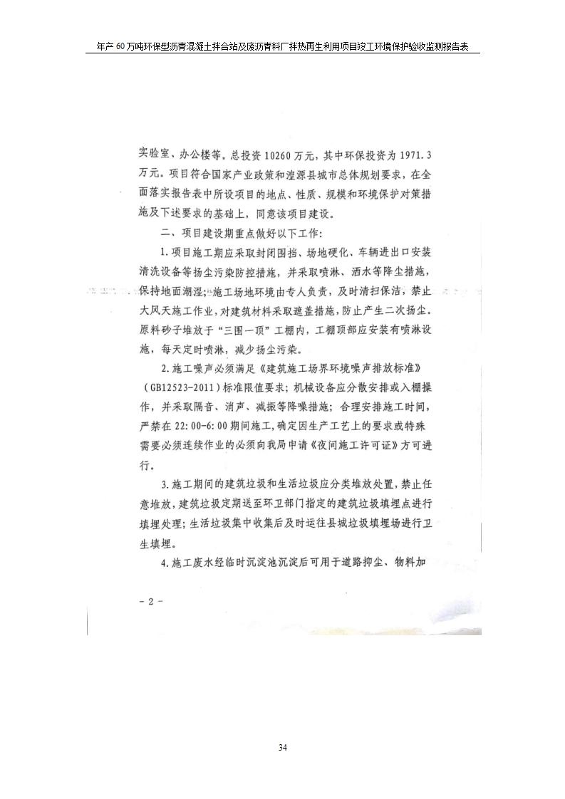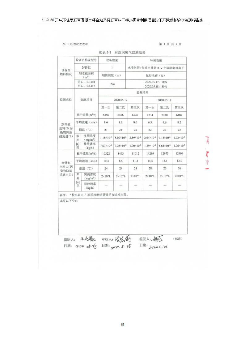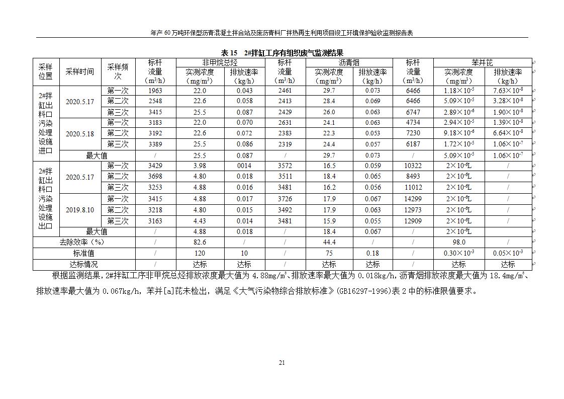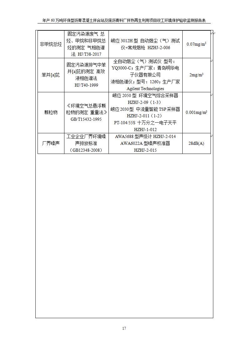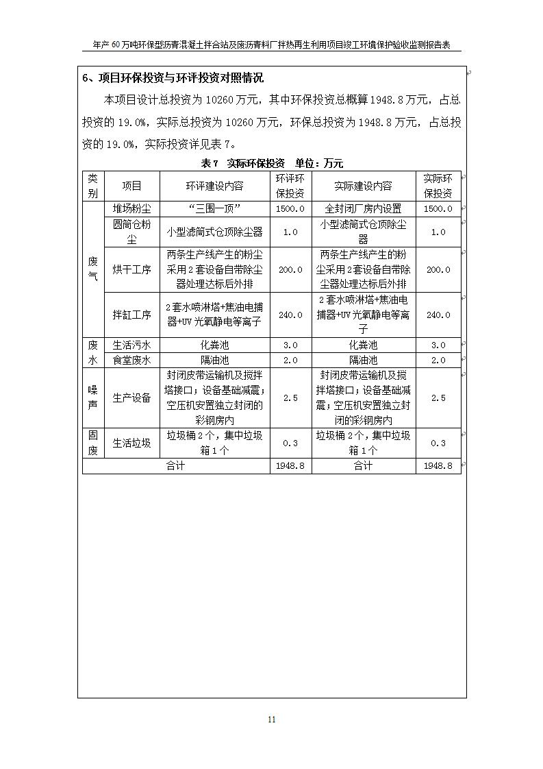年產60萬噸環(huán)保型瀝青混凝土拌合站及廢瀝青料廠拌熱再生利用項目竣工環(huán)境保護驗收監(jiān)測報告表公示發(fā)布日期:(2020-7-6) 點擊次數(shù):3934 |