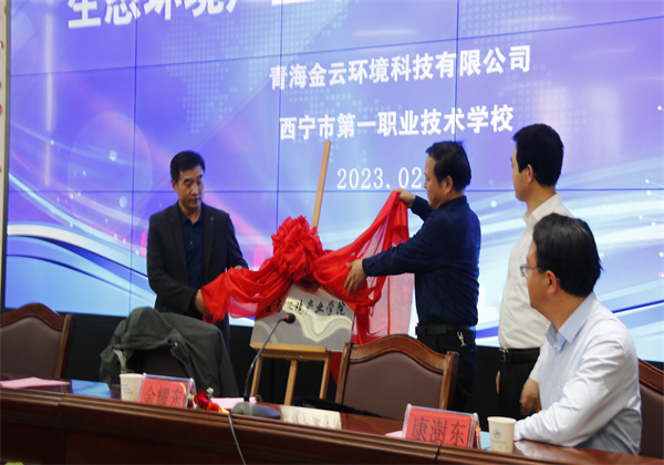 為深入貫徹落實(shí)職業(yè)教育現(xiàn)場(chǎng)推進(jìn)會(huì)精神,深化產(chǎn)教融合校企合作,2023年2月23日,西寧市第一職業(yè)技術(shù)學(xué)校與青海金云環(huán)境科技有限公司隆重舉行校企生態(tài)環(huán)境產(chǎn)業(yè)學(xué)院簽約掛牌儀式。西寧市教育局領(lǐng)導(dǎo),西寧市第一職業(yè)技術(shù)學(xué)校領(lǐng)導(dǎo)及生態(tài)環(huán)境產(chǎn)業(yè)學(xué)院師生,金云科技高層領(lǐng)導(dǎo)出席簽約儀式。儀式由西寧第一職業(yè)技術(shù)學(xué)校黨委書記、校長(zhǎng)金耀東主持。